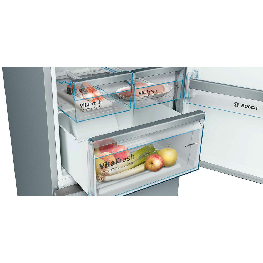 Двухкамерный холодильник Bosch KGN39IZEA оснащен контейнером VitaFresh, при 0°C температуре сохраняется свежесть продуктов мяса, рыбы и овощей. Светодиодное освещение не создает бликов и отлично освещает все полки внутренней камеры. Система No Frost циркулирует холодным воздухом не создавая льда на стенках устройства.