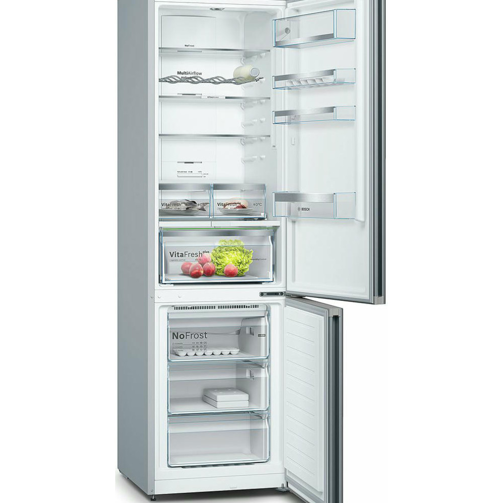 Двухкамерный холодильник Bosch KGN39LB3AR черного цвета с сенсорным дисплеем — эффектная модель с зоной свежести VitaFresh plus и системой охлаждения NoFrost. Благодаря регулировке уровня влажности овощи и фрукты остаются свежими дольше. Контейнеры «нулевой» зоны для мяса и рыбы можно вынуть, чтобы поставить тарелки с готовыми блюдами, бутылки.