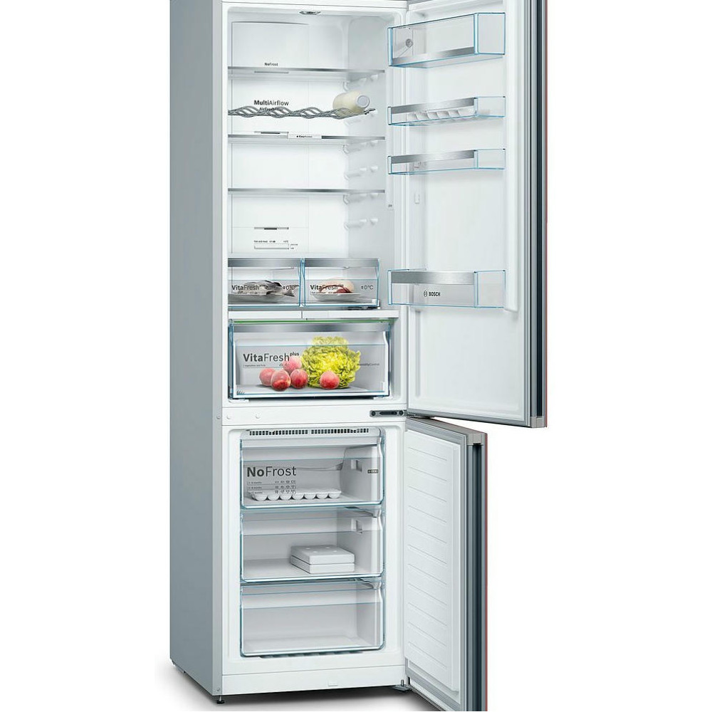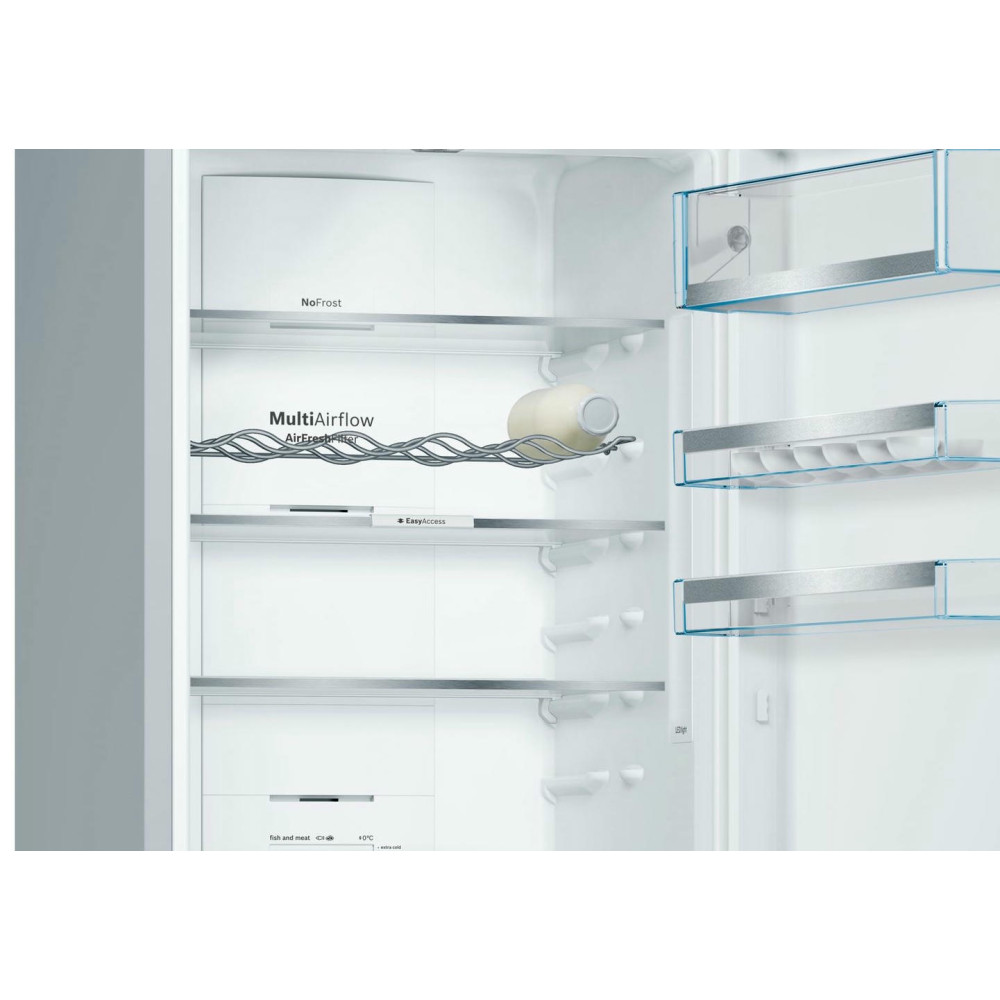 Цвет наружных стенок корпуса — «серебристый металлик». Модель имеет раздельную регулировку температуры, оснащена дисплеем. В холодильной камере установлена боковая и потолочная светодиодная подсветка. Мощность замораживания составляет 15 кг/сутки. В случае отключения электричества сохраняет холод в автономном режиме до 16 часов. Отличается пониженным энергопотреблением (класс А++).
