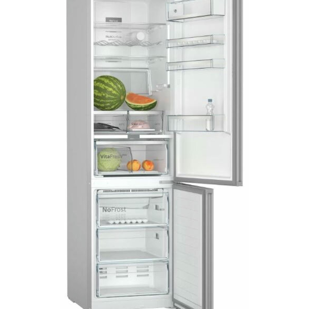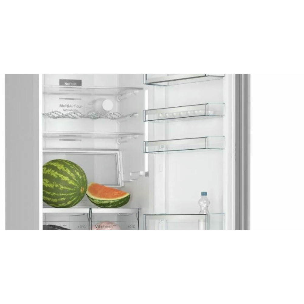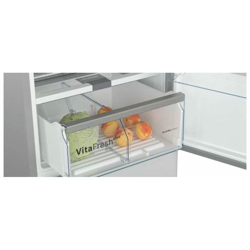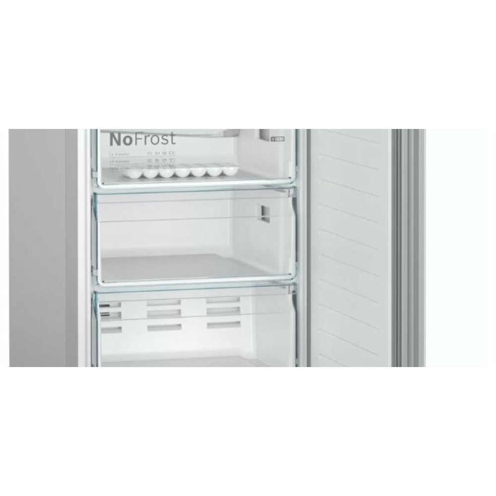 Двухкамерный холодильник Bosch KGN39LW32R выполнен в классическом белом цвете и обладает большой вместимостью при стандартных габаритах. EasyAccess — это система крепления полок из закаленного ударопрочного стекла, которые плавно выдвигаются даже при полной загрузке, чтобы можно было с легкостью достать продукты даже из самого дальнего уголка холодильника.