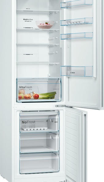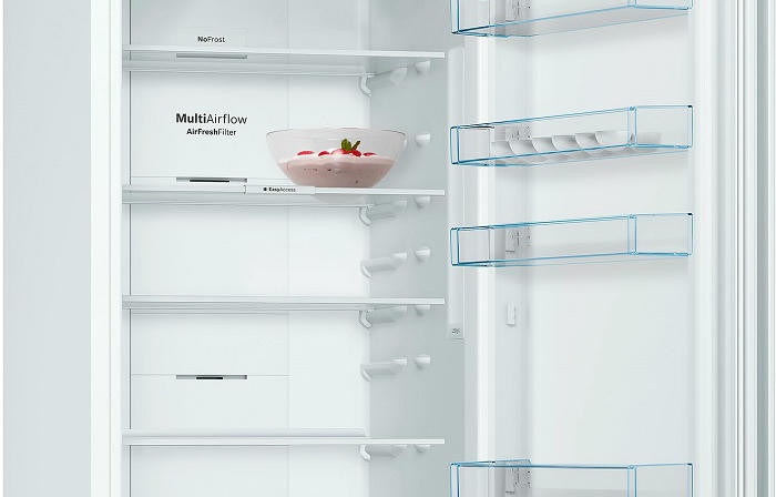 - Система MultiAirflow со встроенным вентилятором улучшает циркуляцию воздуха внутри холодильного отделения, поддерживая оптимальную температуру и влажность на каждой полке.