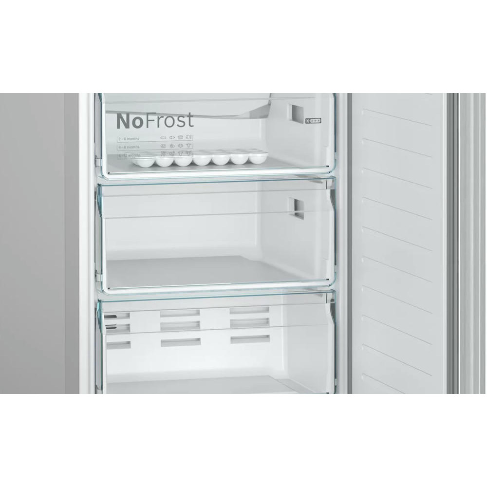 Двухкамерный холодильник BOSCH KGN39UL25R имеет строгий дизайн и цвет нержавеющей стали. Одной из важных особенностей данной модели стала его вместимость. Благодаря уменьшенной толщине стенок удалось повысить полезный объём на 73 литра при сохранении прежних габаритов. Теперь он составляет внушительные 388 л. Сделать это получилось за счёт использования передовых изоляционных материалов.