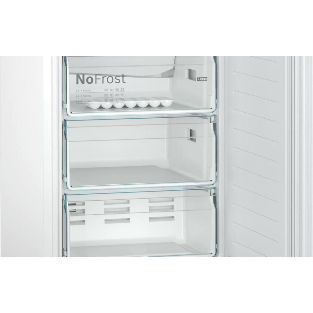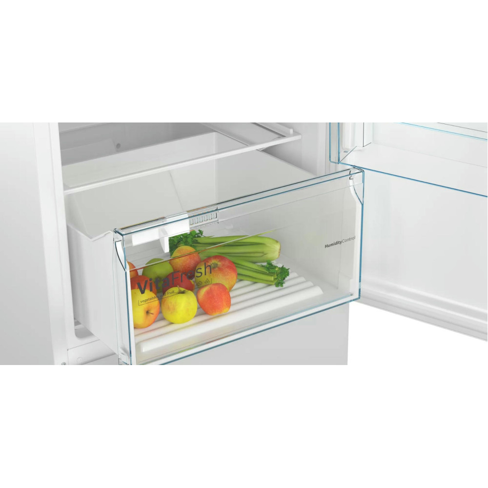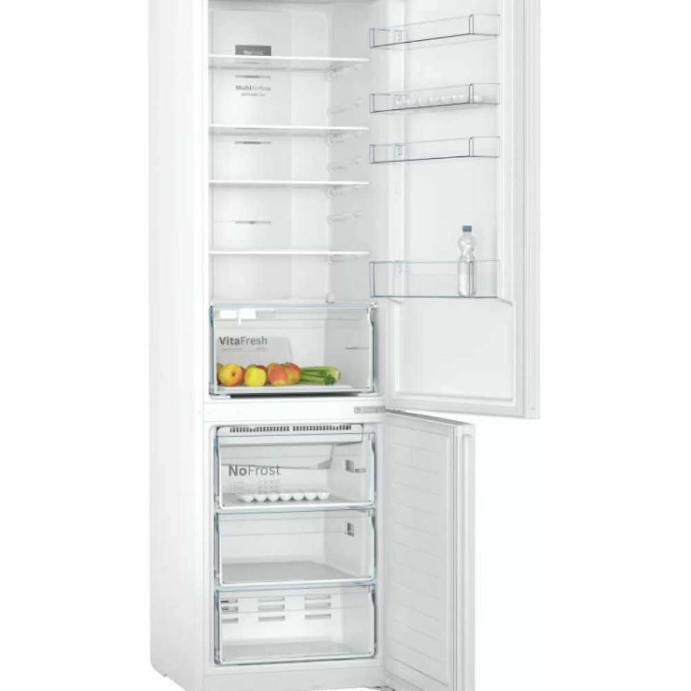 Благодаря NoFrost прибор нет необходимости размораживать, излишняя влага отводится вентиляторами наружу. Для эффективного хранения овощей и фруктов предусмотрена зона свежести VitaFresh, при температуре около 0°C продукты сохраняют витамины в 2-3 раза дольше.