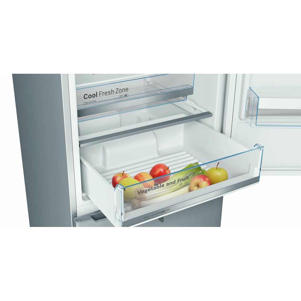 Зона VitaFresh с волнистым дном и настройкой влажности поможет сохранить свежесть овощей и фруктов надолго. Данная модель оснащена раздельной регулировкой температуры в холодильном и морозильном отделениях и контролем с точностью до 1 градуса Цельсия, что позволяет подобрать оптимальные условия для хранения любых продуктов.