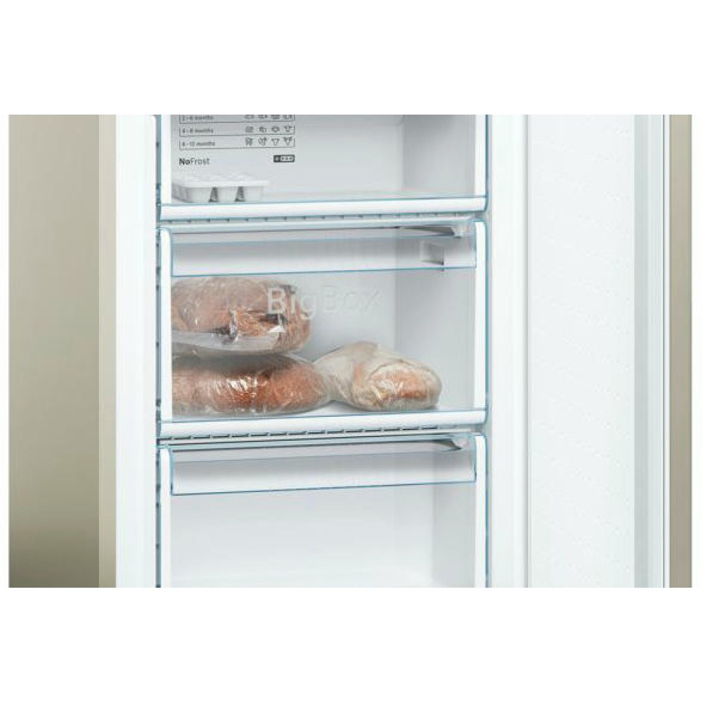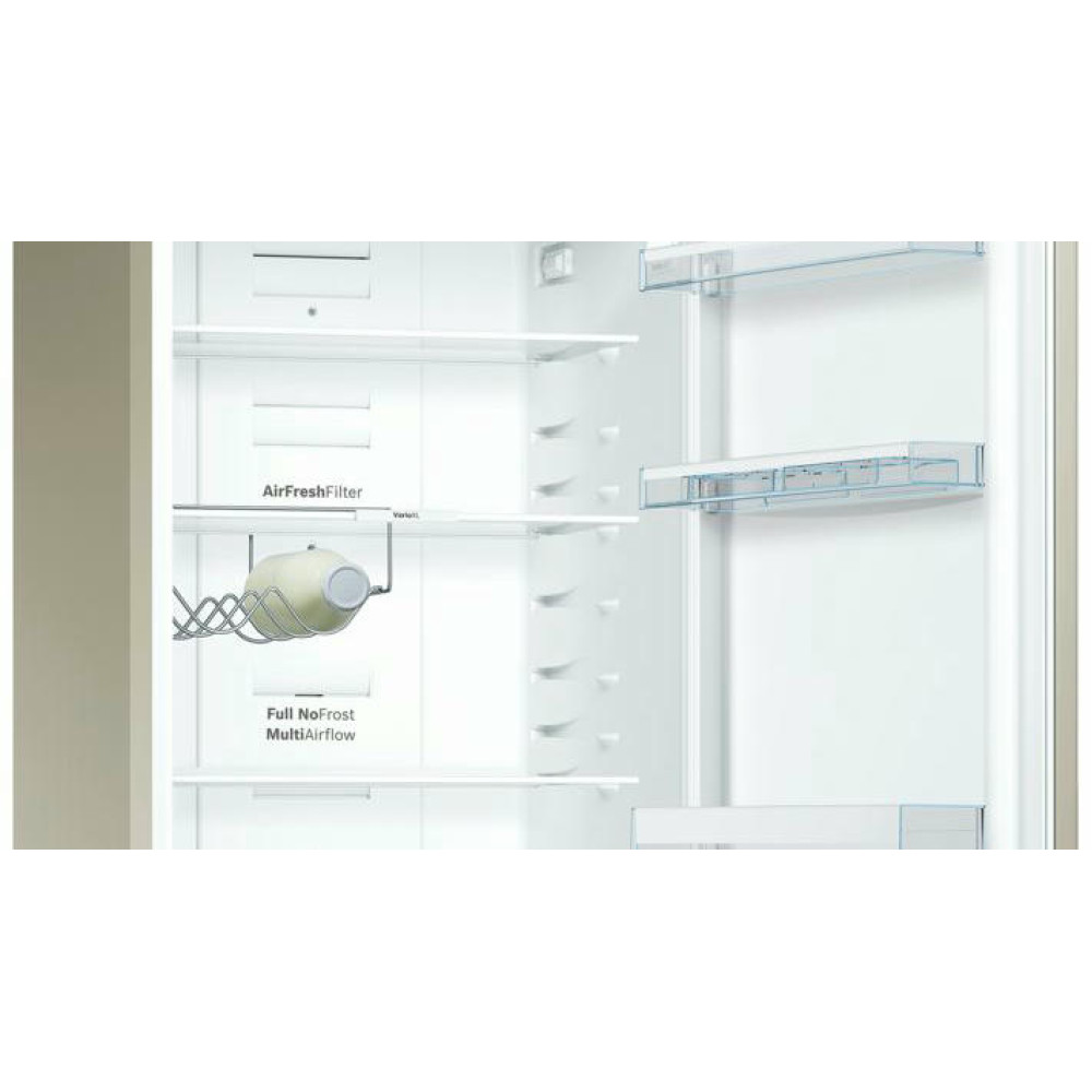 Двухкамерный холодильник Bosch KGN39VK16 выполнен в бежевом цвете. Регулировка и контроль температуры с точностью до 1 градуса Цельсия позволит подобрать оптимальную температуру для хранения любых продуктов. Технология NoFrost предотвращает образование льда внутри прибора — это означает, что размораживать устройство не нужно. Комфорт пользования повышают возможность перевешивания двери и удобные ручки.