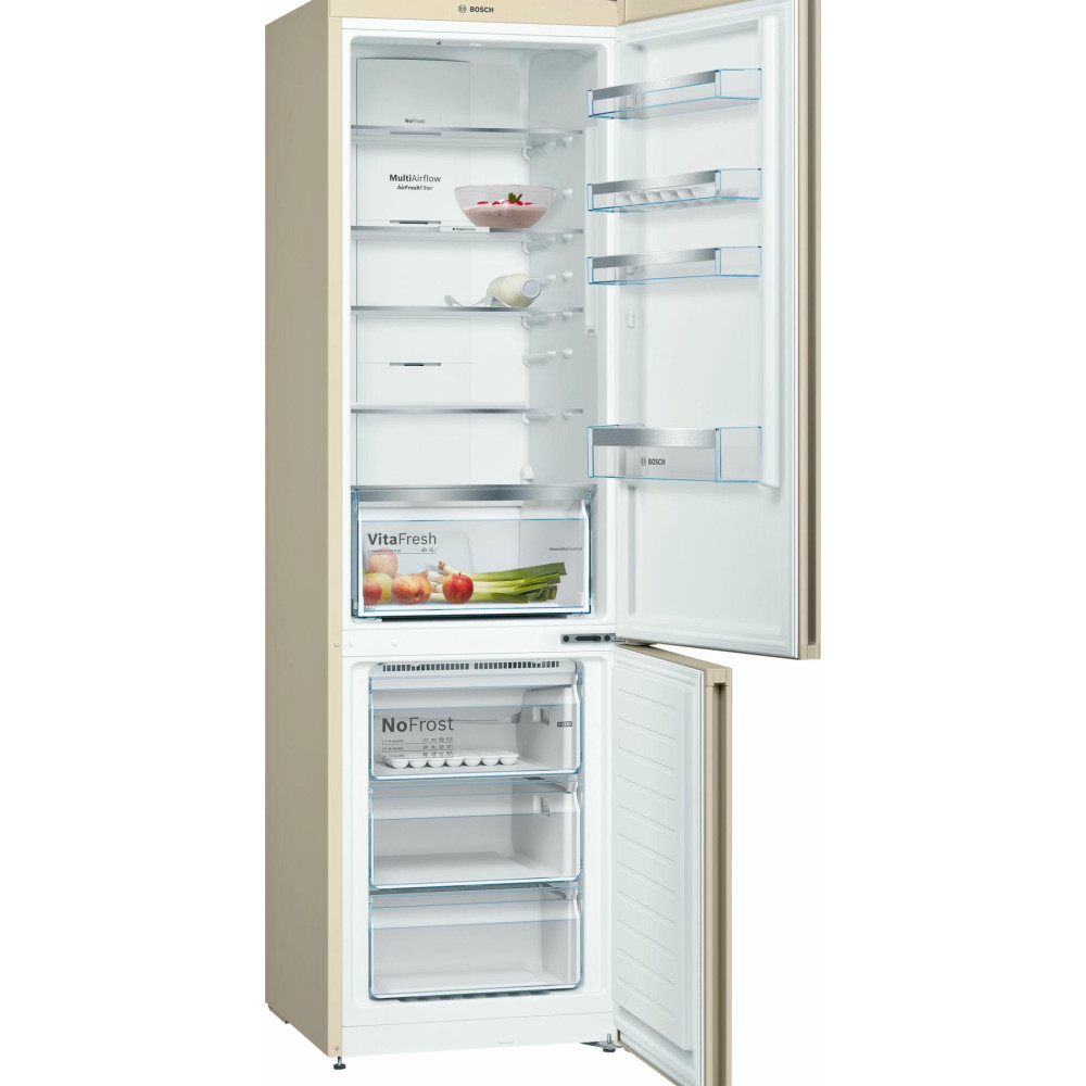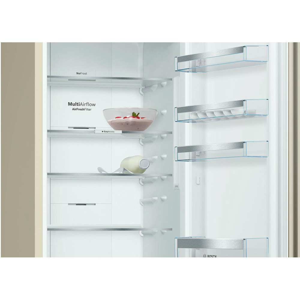 Система MultiAirflow направляет потоки охлажденного воздуха на все уровни холодильного и морозильного отделений, и при помощи датичков FreshSense поддерживает постоянную температуру. В морозильной камере NoFrost кроме стандартных контейнеров находится просторный контейнер BigBox высотой 29 см, в который легко поместить индейку, гуся или большие коробки пиццы.