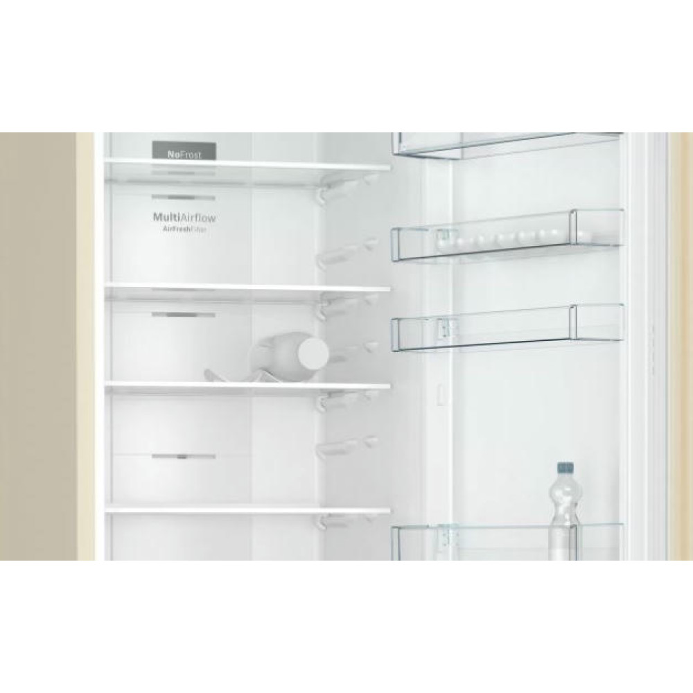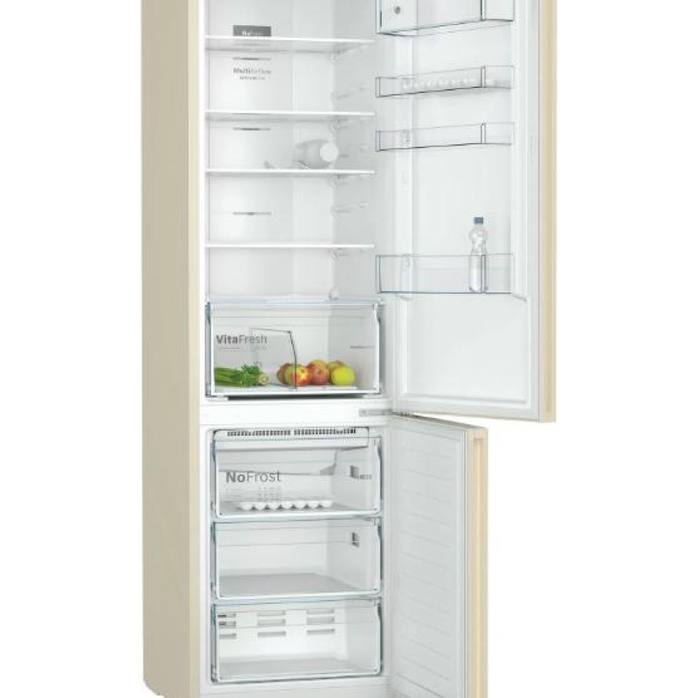 Двухкамерный холодильник Bosch KGN39VK25R благодаря системе Multi Airflow направляет потоки охлажденного воздуха на все уровни. Это поддерживает постоянную температуру холодильного и морозильного отделений. Устройство имеет яркое боковое LED освещение и точечную подсветку зон свежести: вы всегда видите полки, на которые кладете продукты. Простая панель управления позволит регулировать температуру с максимальной точностью. Благодаря классу энергоэффективности A+ вы сэкономите бюджет на счетах за электричество.