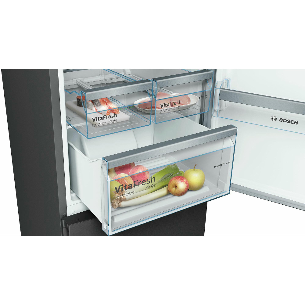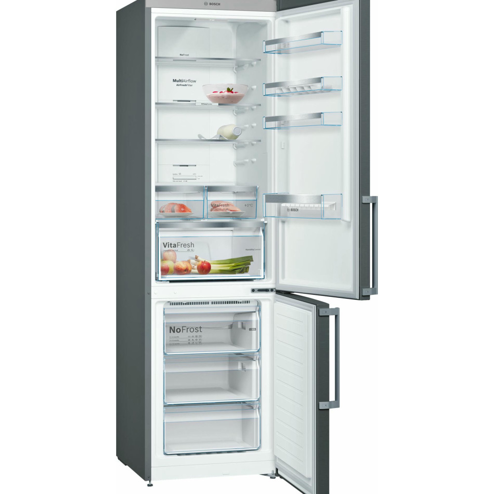 Двухкамерный холодильник Bosch KGN39XC3OR представлен в цвете «чугун». Зона VitaFresh с настройкой влажности предусматривает не только ящик для овощей и фруктов, но и для рыбы и мяса, увеличивая срок их хранения почти в 2 раза. Класс энергопотребления A++ делает прибор экономичным — потребление электроэнергии на 20% меньше, чем у устройств А класса. С помощью сенсорных элементов управления можно комфортно и быстро подобрать оптимальные условия для любых продуктов.