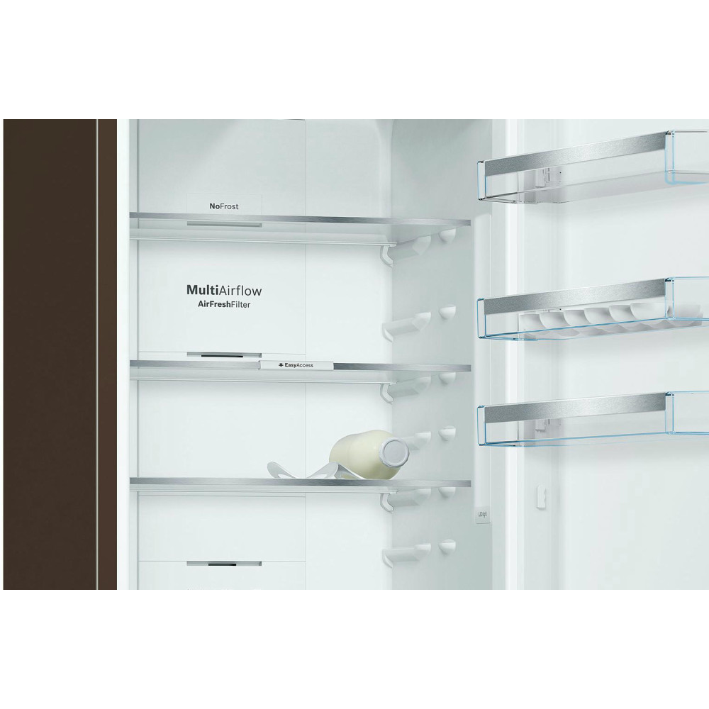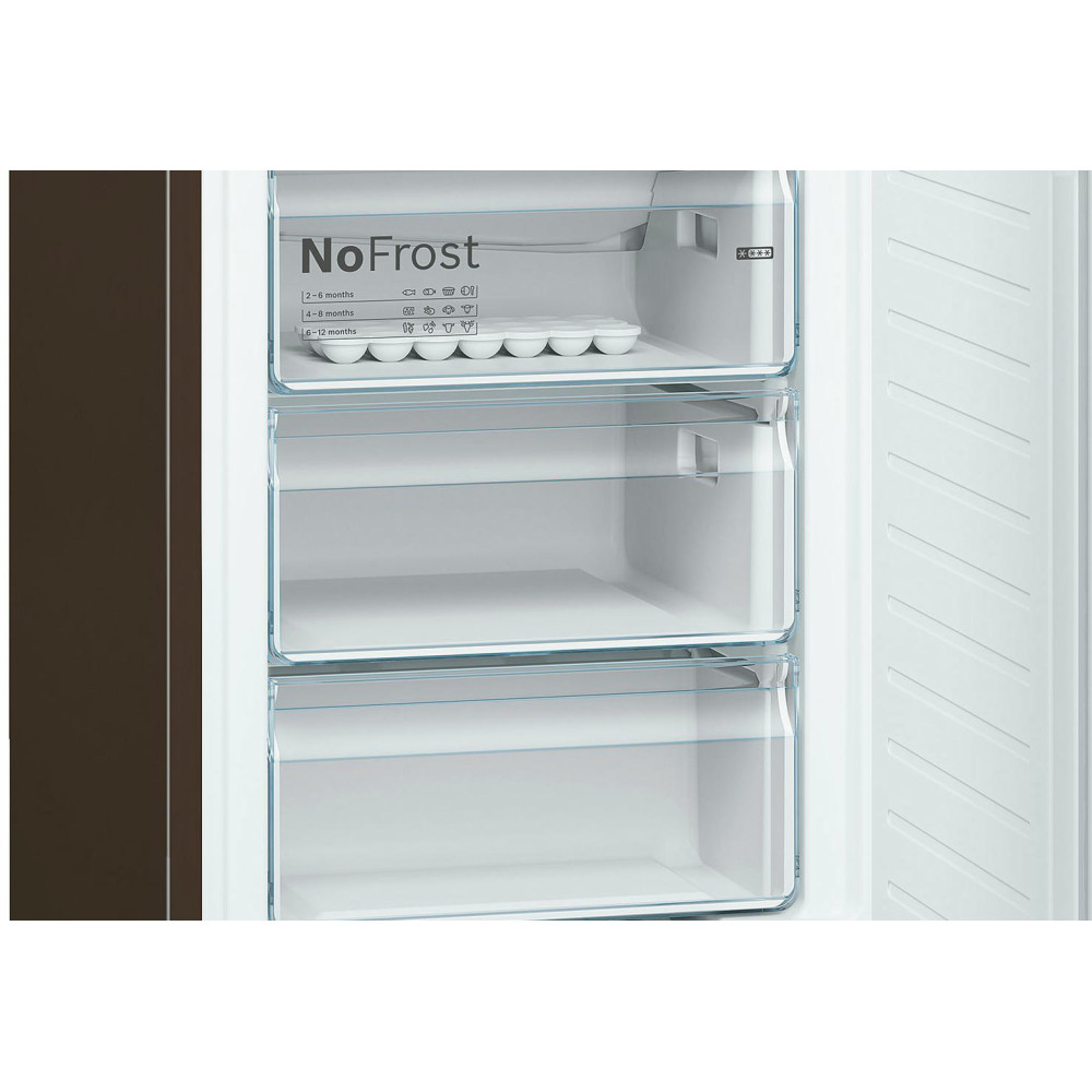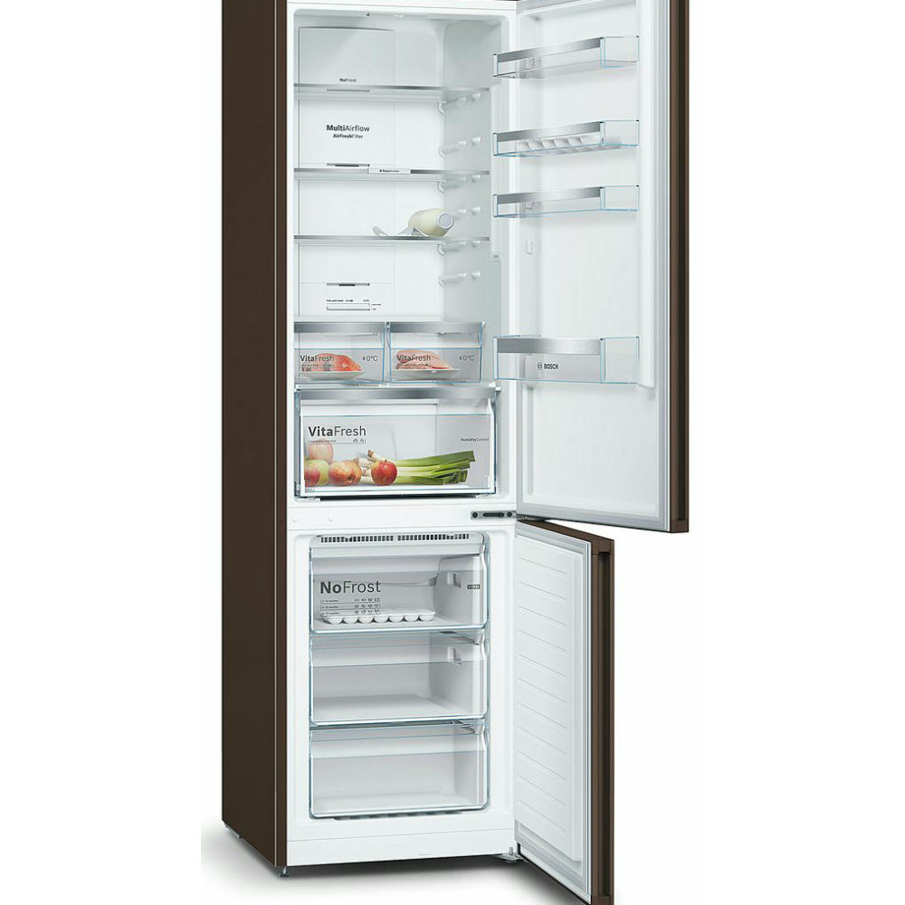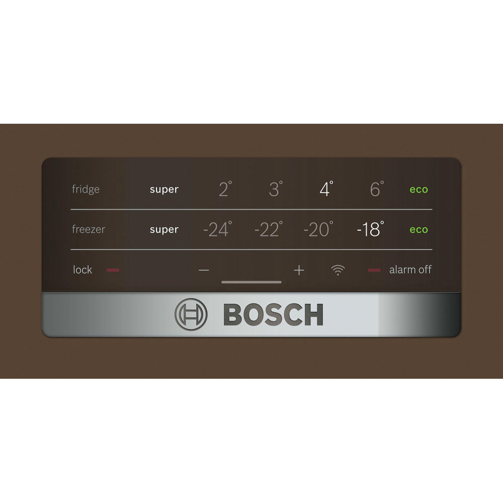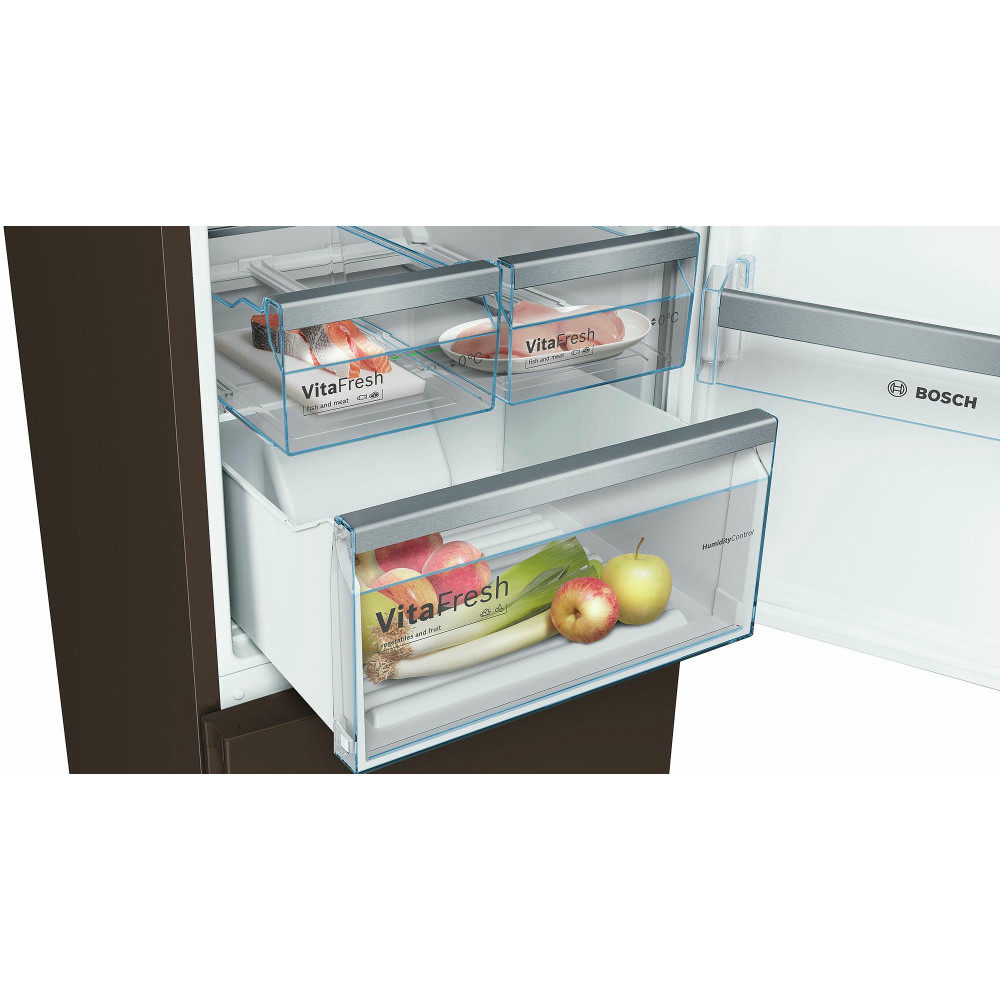 Двухкамерный холодильник Bosch KGN39XD3AR выполнен в темно-коричневом цвете. Благодаря классу энергопотребления A++, прибор позволяет экономить электроэнергию, потребляя на 20% меньше, чем устройства А класса. Зона VitaFresh с настройкой влажности, предусмотренная в этой модели, содержит не только ящик для овощей и фруктов, но также для рыбы и для мяса, увеличивая их срок годности почти в 2 раза. С помощью сенсорных элементов управления можно комфортно задать оптимальные условия хранения для любых продуктов.