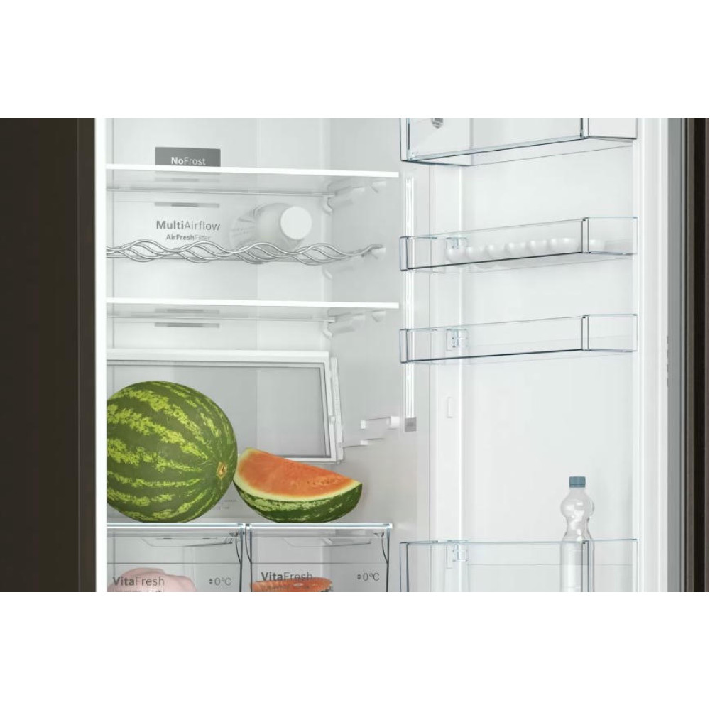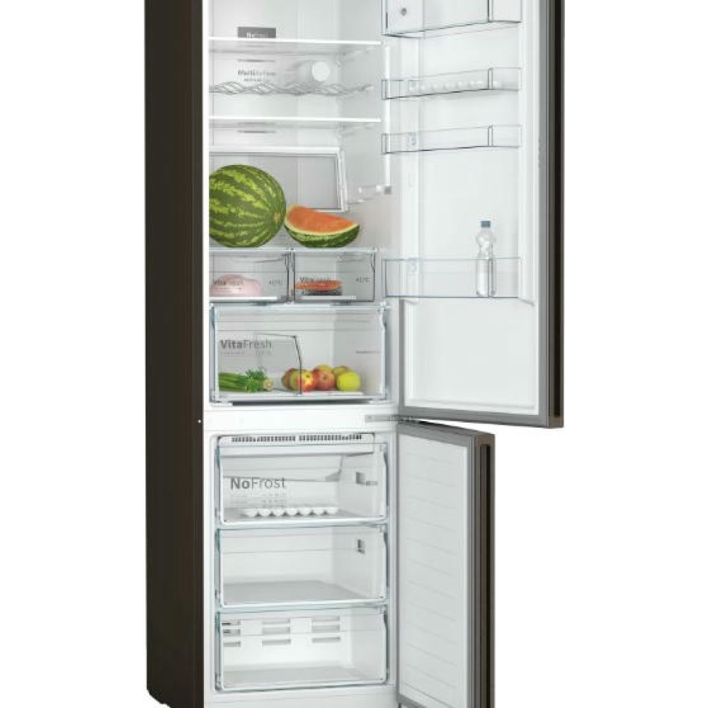 Bosch KGN39XG20R — двухкамерный холодильник, который подстраивается под вас! Полка Garage Shelf может складываться пополам, чтобы вы могли поставить большую кастрюлю или высокую упаковку молока. Еще вы можете сложить полку полностью, чтобы получить больше пространства и положит, например, арбуз.