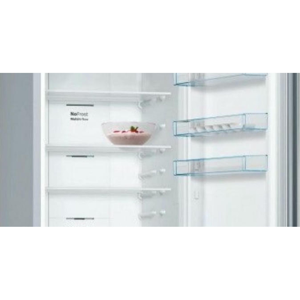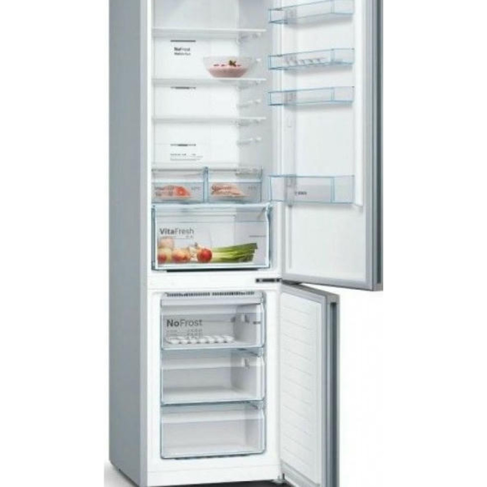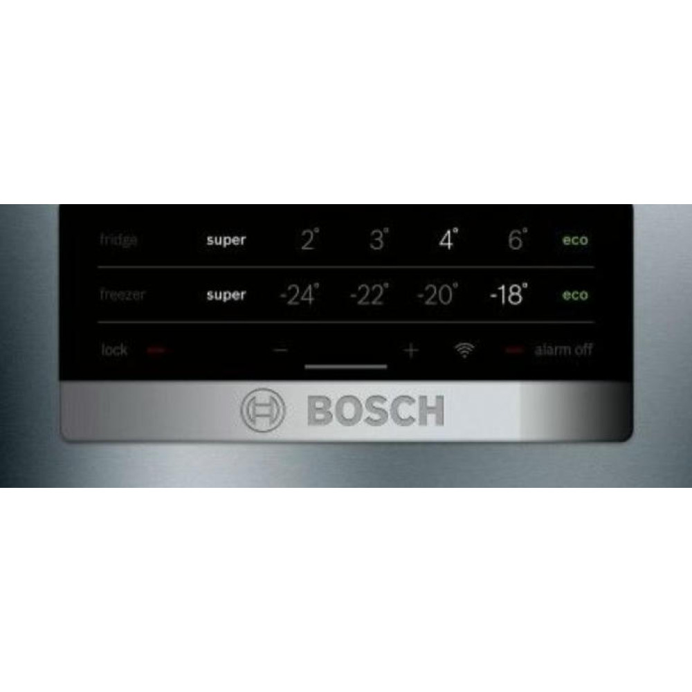 Двухкамерный холодильник Bosch KGN39XI30U обладает классом энергопотребления E (старое обозначение A++), что говорит о его энергоэффективности. Уровень шума составляет всего 39 дБ, что делает его практически бесшумным. В случае открытия двери или возникновения ошибки активируется звуковая и световая сигнализация.