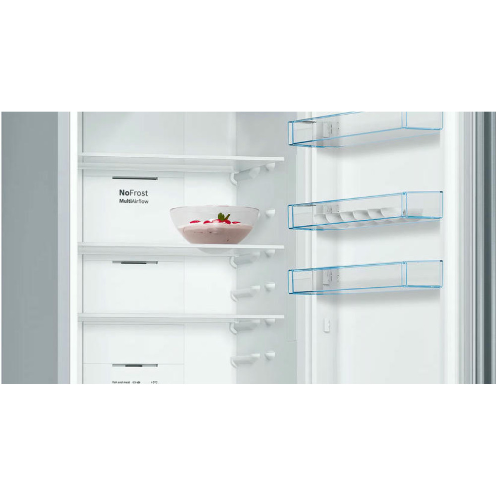 Внутреннее освещение холодильной камеры выполнено на светодиодах, что обеспечивает яркий и равномерный свет. В морозильной камере предусмотрено 3 ящика, что позволяет удобно разместить замороженные продукты.