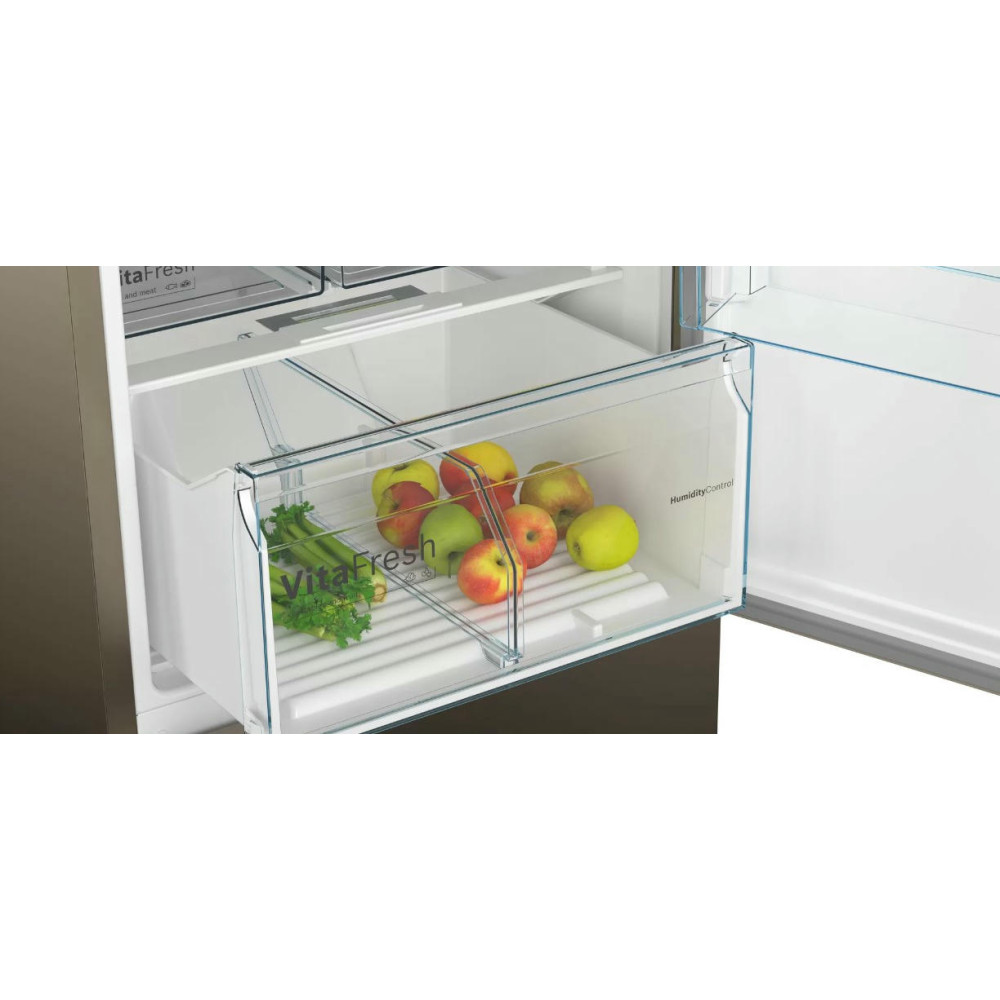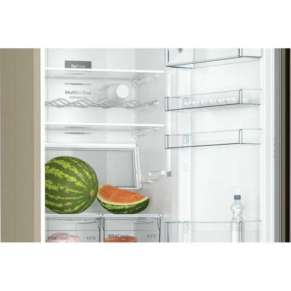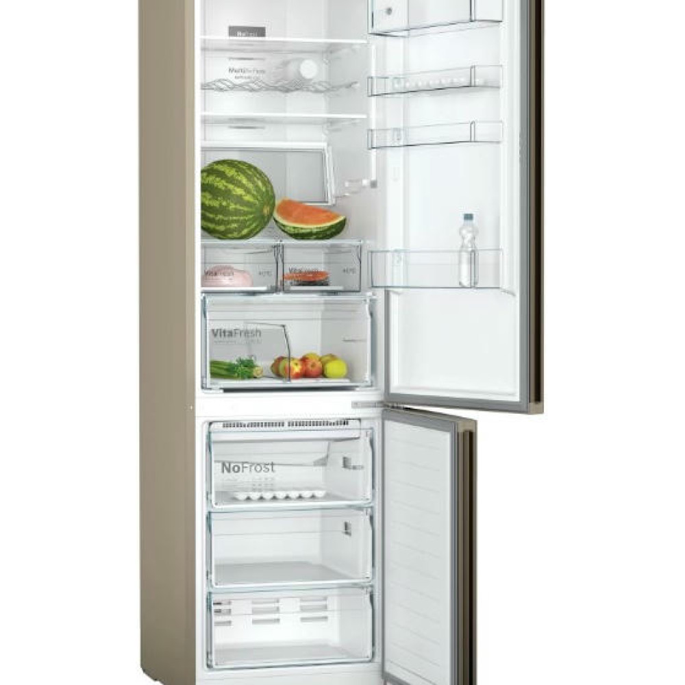 Bosch KGN39XV20R — двухкамерный холодильник, который подстраивается под вас! Полка Garage Shelf складывается пополам, чтобы можно было поставить большую кастрюлю или упаковку сока. Также полку можно поднять полностью — так вы получите еще больше пространства.