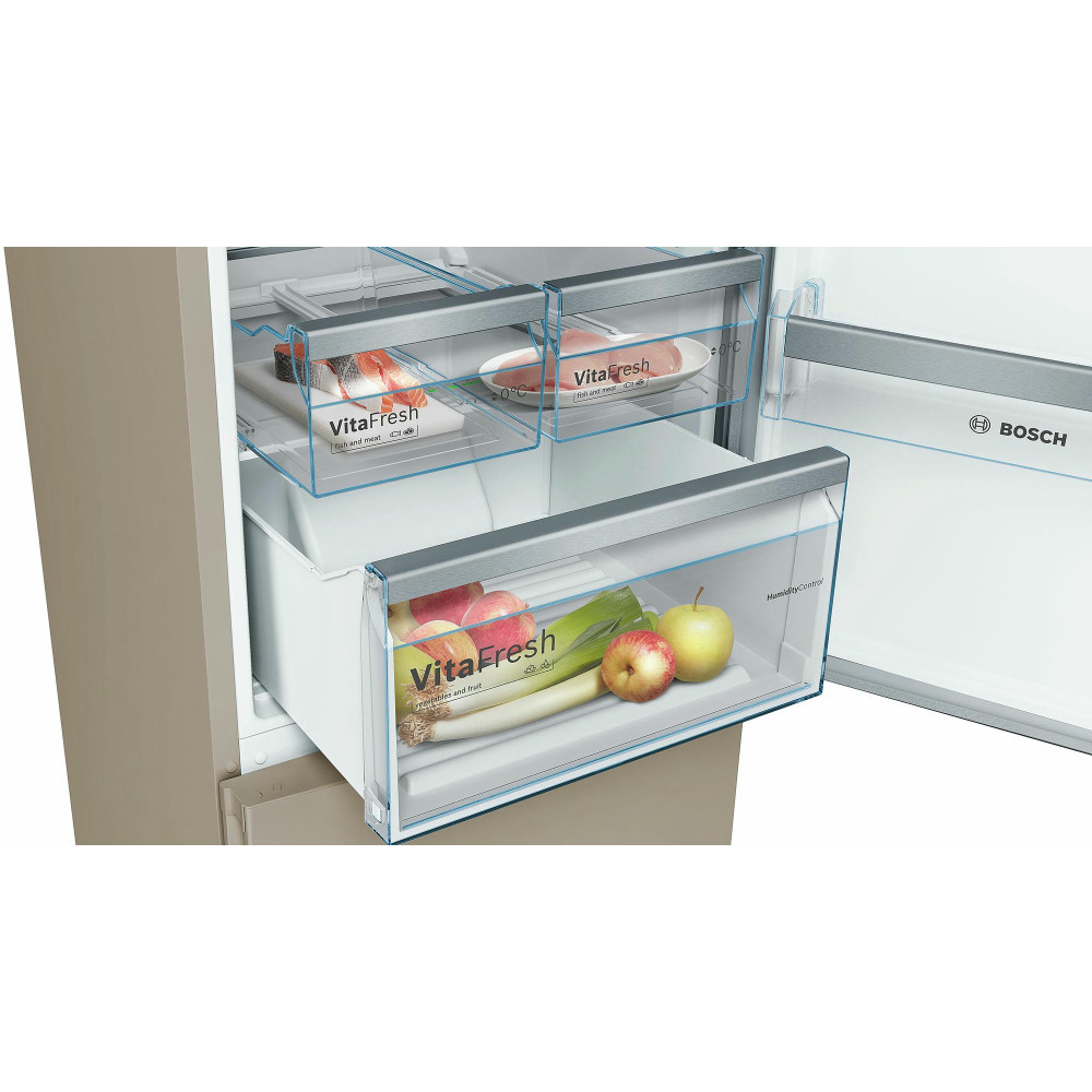 - зона VitaFresh с вместительным контейнером. Овощи и фрукты хранятся при оптимальных показателях влажности. Телескопические направляющие дают возможность легко выдвигать даже переполненный бокс;