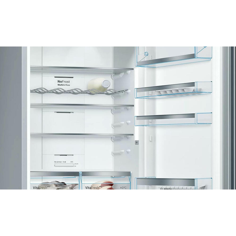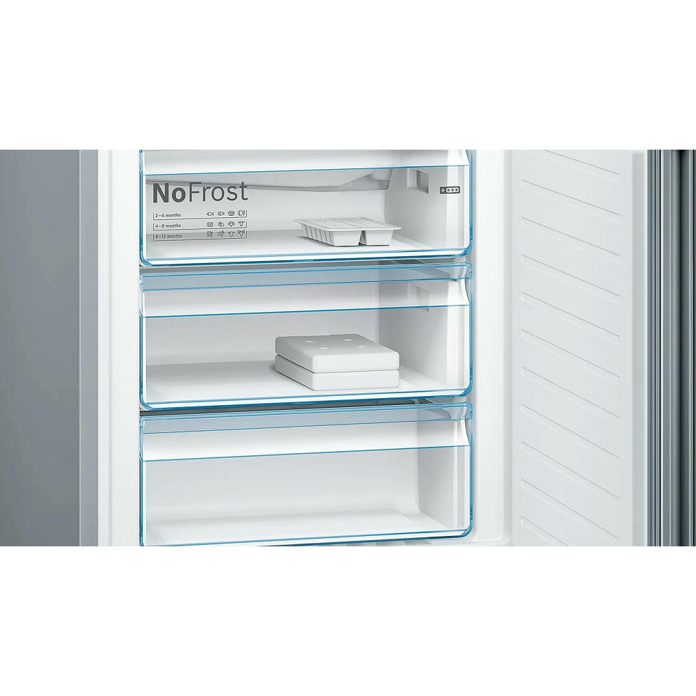Двухкамерный холодильник Bosch KGN49LB20R выполнен в черном цвете и прекрасно впишется в любой современный интерьер. Система PerfectFit дает возможность расположить модель вплотную к стене или к другим бытовым приборам, благодаря чему сохраняется драгоценное место на кухне, которое можно использовать с пользой. Яркая светодиодная подсветка равномерно освещает внутреннее пространство прибора и гарантирует комфортную эксплуатацию. Кроме того, светодиодные лампы потребляют меньше электроэнергии, чем обычные лампы накаливания, и служат в течение всего срока службы изделия.