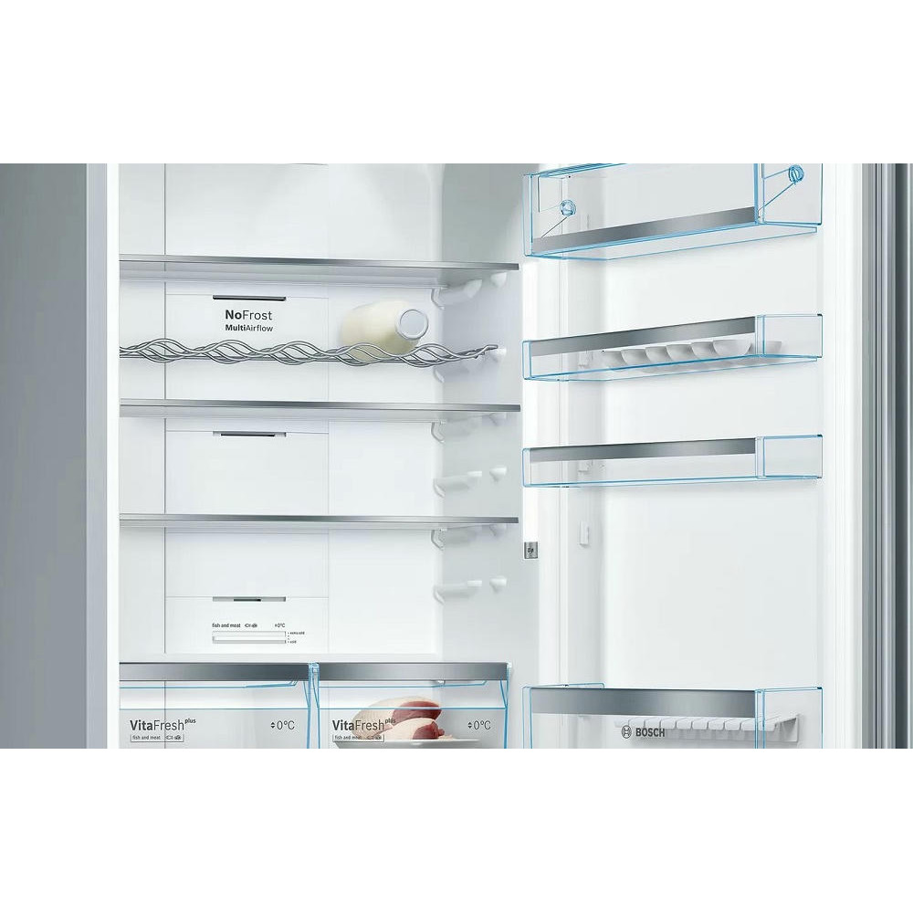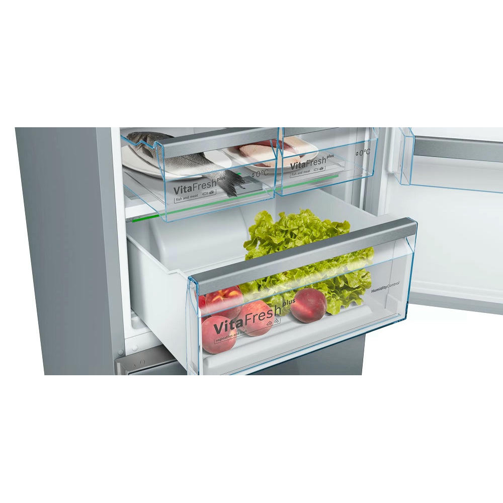 Отдельностоящий холодильник Bosch KGN49MI20R представлен в цвете «нержавеющая сталь» с покрытием EasyClean, защищающим от отпечатков. Благодаря удобному интуитивно понятному управлению и 2-х контурному охлаждению можно регулировать температуру в холодильной и морозильной камерах с максимальной точностью без потери в эффективности. Функция SuperCooling обеспечивает более быстрое охлаждение только что поставленных продуктов.