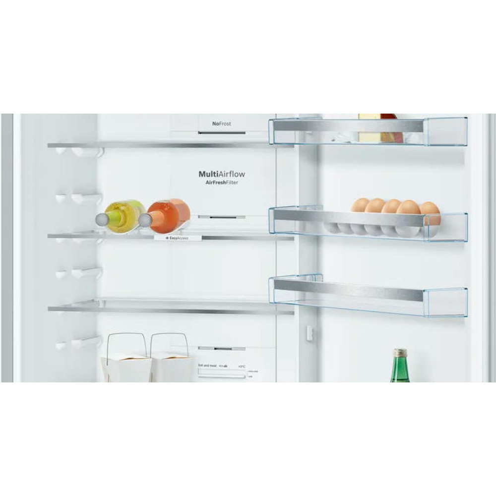 Двухкамерный холодильник Bosch KGN49XI30U оснащен технологией No Frost, она поддерживает постоянный поток сухого воздуха и предотвращает образование льда, вы можете забыть о размораживании холодильного и морозильного отделения. Multi-Flow Air - создает многопоточные системы, которые равномерно распределяют низкую температуру по всей камере. Имеется зона свежести продуктов VitaFresh в ней удобно хранить свежую рыбу, мясо, овощи и фрукты до 0°C.