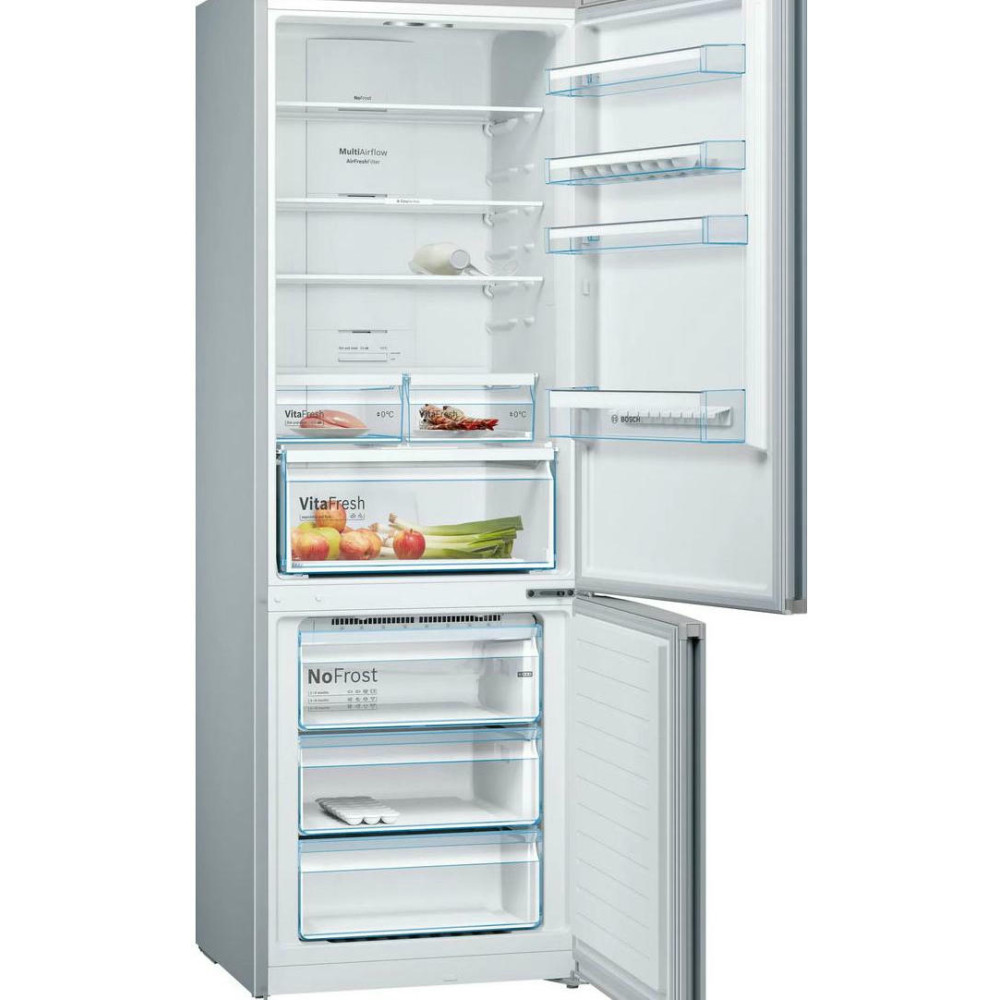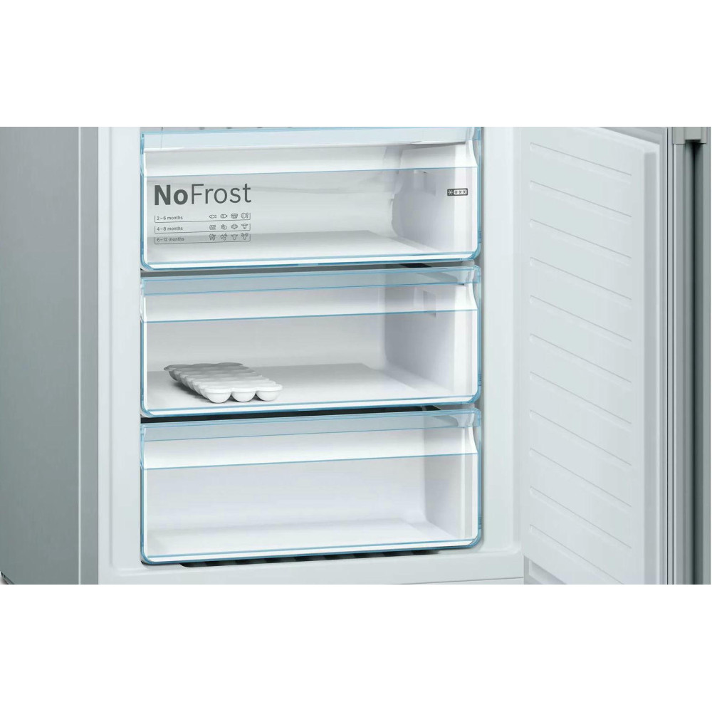 Особенностью этого холодильника является система охлаждения No Frost, которая предотвращает образование льда и инея внутри холодильной и морозильной камер. Это значительно облегчает уход за устройством и экономит энергию. Автоматическая система размораживания также упрощает обслуживание и поддержание оптимальных условий для хранения продуктов.