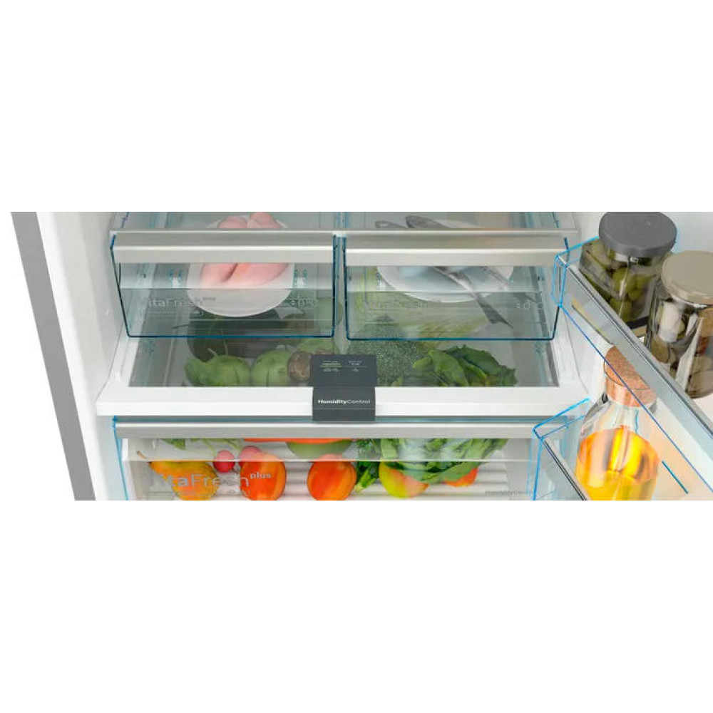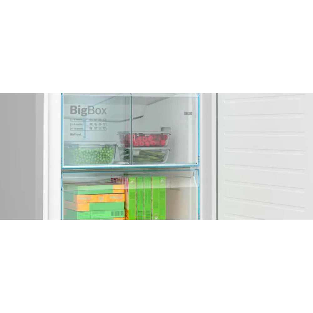 Полезный объем составляет 105 литров, что позволяет хранить большое количество замороженных продуктов. Система суперзамораживание SuperFreezing обеспечивает быстрое замораживание продуктов, сохраняя их свежесть и вкус. Модель Bosch KGN56LW31U оборудована функцией Home Connect, которая позволяет управлять холодильником дистанционно через смартфон или планшет. Это очень удобно, если вы внезапно забыли закрыть дверцу или хотите изменить температуру внутри холодильника.