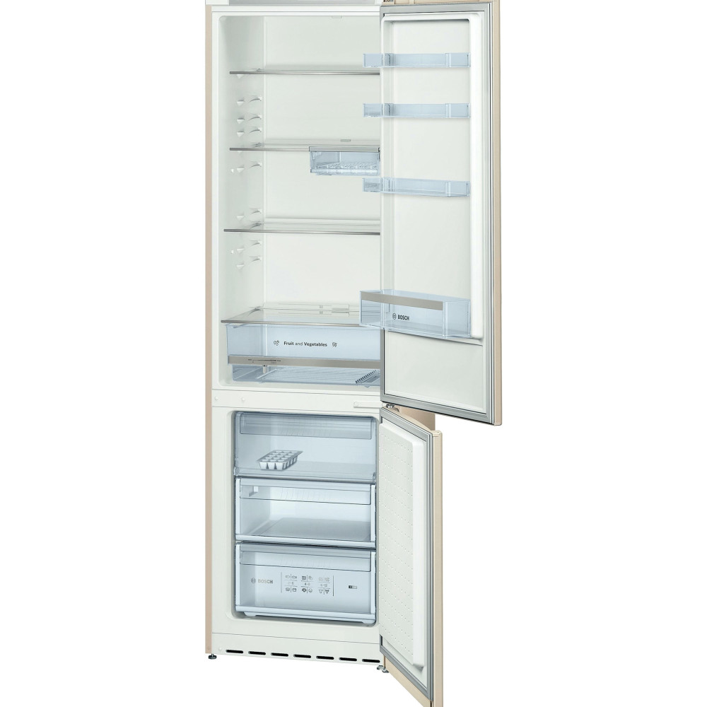 Холодильник KGV 39VK23 R в бежевом исполнении гармонирует со светлыми интерьерами и теплыми фасадами кухонного гарнитура. Технология LowFrost не сушит продукты и поддерживает естественную свежесть внутри холодильного отделения. Удобная панель управления позволяет легко устанавливать и изменять температуру. Светодиодная лампа равномерно освещает камеру для комфортного обзора содержимого. Эргономичные полочки регулируются по высоте.