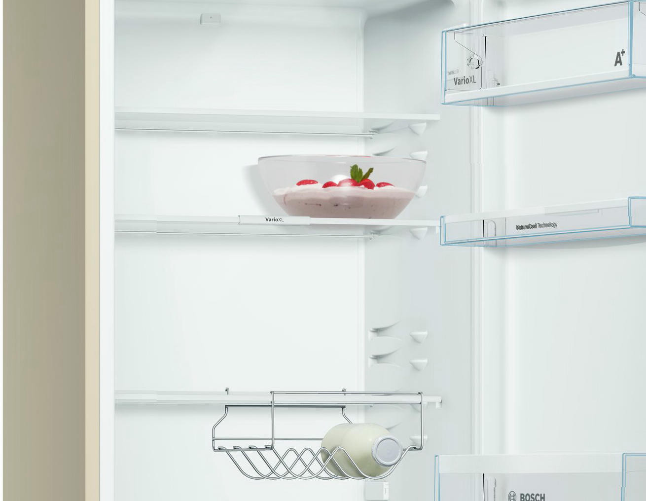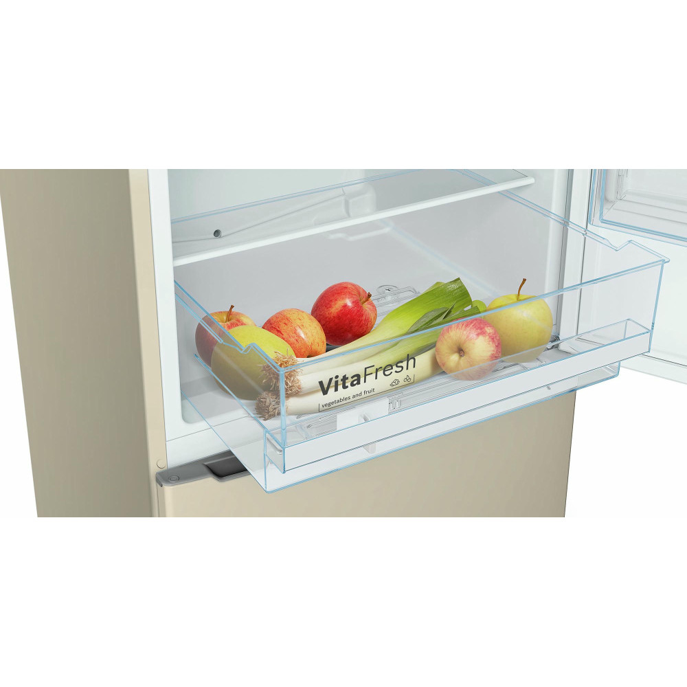 Двухкамерный холодильник Bosch KGV36XK2A бежевого цвета с нижней морозильной камерой — удобная экономичная модель, которая относится к классу эффективности А+. Благодаря системе охлаждения LowFrost образование льда в морозильной камере минимальное. Технология NatureCool поддерживает в холодильнике оптимальную влажность, что позволяет надолго сохранить свежесть овощей и фруктов.