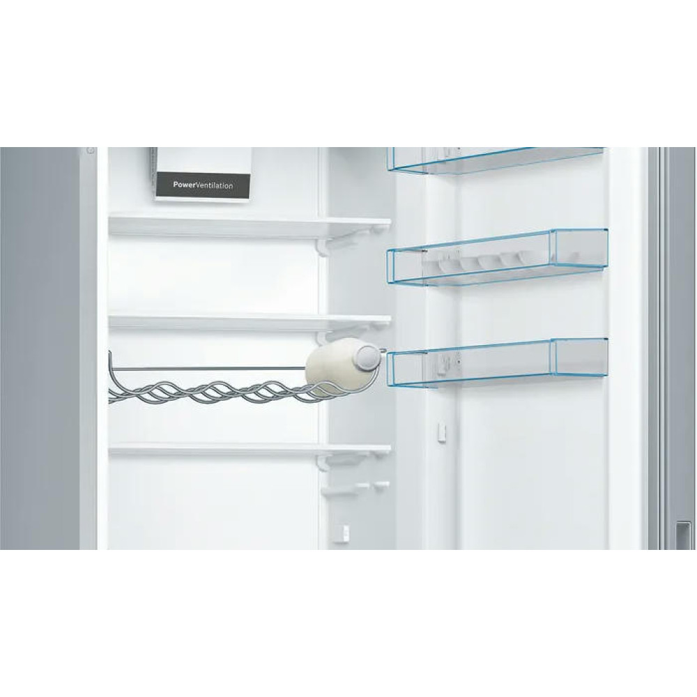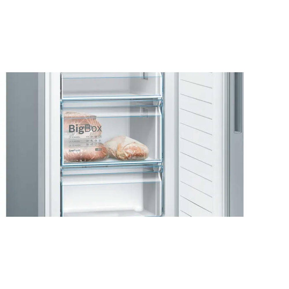 Двухкамерный холодильник Bosch KGV39VLEAS — это высококачественное устройство, сочетающее в себе надежность и функциональность. Произведенный в Евросоюзе, этот холодильник предлагает потребителю 343 литра общего полезного объема, из которых 249 литров отводится под холодильную камеру, а 94 литра — под морозильную. Стильный и современный дизайн холодильника выделяется на фоне других благодаря своему корпусу из нержавеющей стали. Обработка против отпечатков пальцев делает его не только эстетически приятным, но и удобным в эксплуатации. Встроенная вертикальная ручка двери обеспечивает легкость открытия и закрытия холодильника. Управление холодильником осуществляется при помощи электронной системы с кнопками. Система охлаждения холодильной камеры статическая, а система размораживания — автоматическая. Это обеспечивает равномерное распределение температуры внутри холодильника и предотвращает образование инея. В холодильной камере предусмотрено 5 полок, из которых 2 можно регулировать по высоте. Полки из высокопрочного стекла выдерживают значительные нагрузки. Выдвижной контейнер MultiBox идеально подходит для хранения овощей и фруктов, а выдвижные полки EasyAccess облегчают доступ к продуктам. Морозильная камера оснащена системой LowFrost, что минимизирует образование инея и упрощает процесс размораживания. Функция суперзамораживание SuperFreezing позволяет быстро заморозить продукты, сохраняя их свежесть и витамины. Зона свежести VitaFresh предназначена для хранения мяса и рыбы, обеспечивая оптимальные условия для сохранения их свежести.