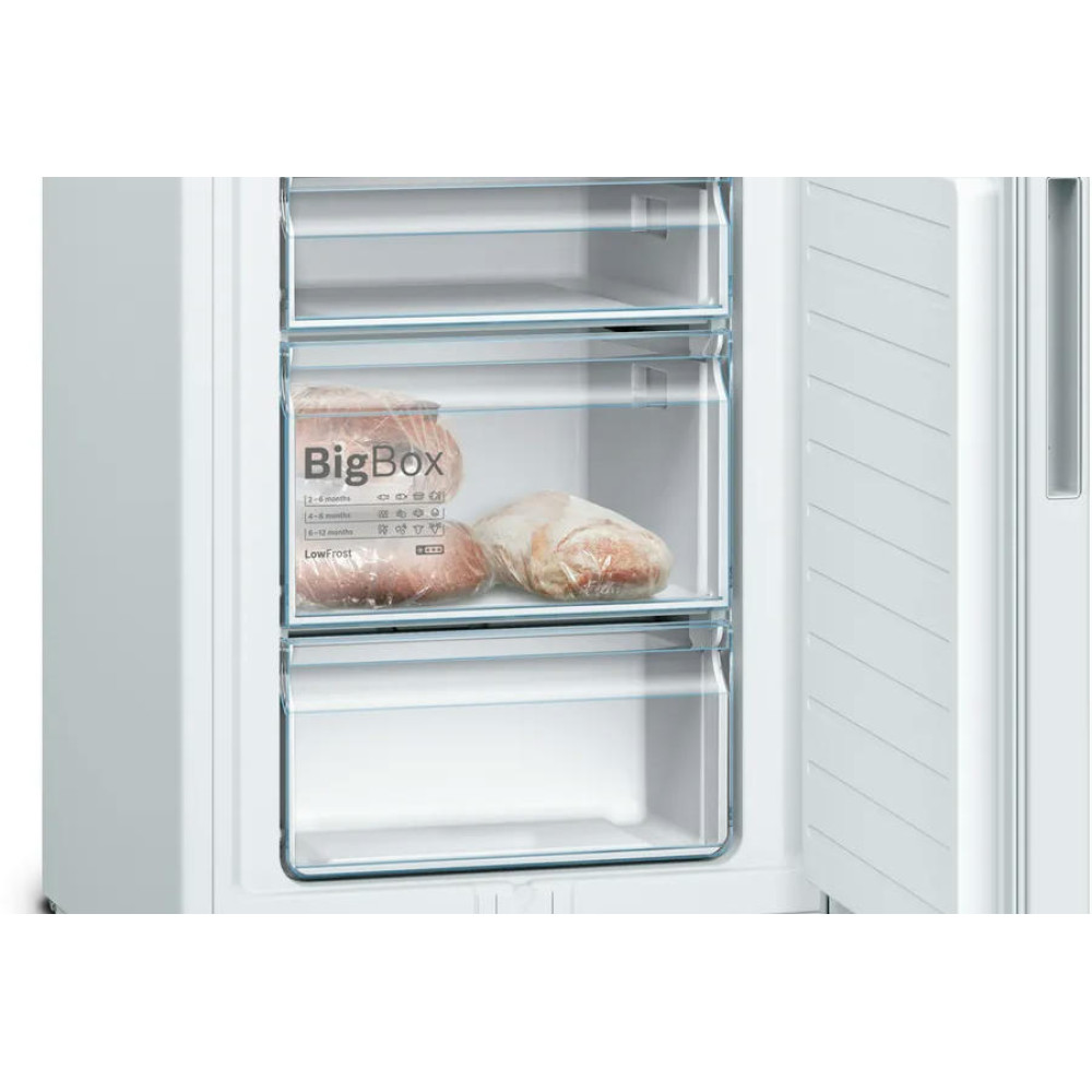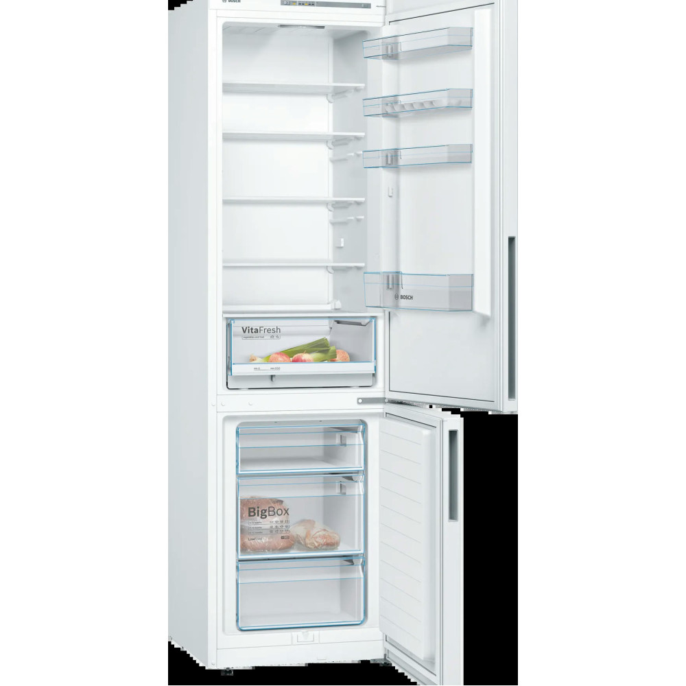 Двухкамерный холодильник Bosch KGV39VW316 — это отличное решение для тех, кто ценит качество, функциональность и стиль. Страна-производитель этого устройства — Россия, что гарантирует его надежность и долговечность. Белый цвет корпуса придает ему классический, безвременной вид, который прекрасно впишется в любой интерьер. Эта модель представляет собой отдельно стоящий холодильник с морозильником, расположенным снизу, что обеспечивает удобство использования и оптимальное размещение продуктов. Общий полезный объем Bosch KGV39VW316 составляет 347 литров, из которых 252 литра отведено для холодильной камеры, и 95 литров — для морозильной. Это позволяет хранить большое количество продуктов, не беспокоясь о нехватке места.