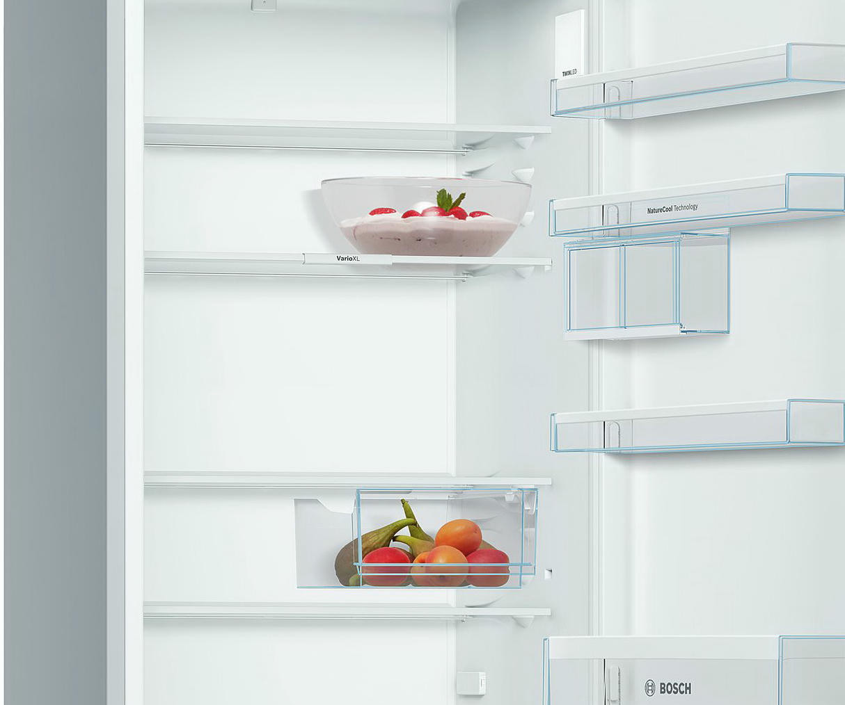 Разработчики позаботились о технологии NatureCool. С ее помощью охлаждение в устройстве осуществляется без принудительной циркуляции воздуха, напрямую от испарителя, который находится за пределами холодильной и морозильной камер. Испаритель встроен в стенки камеры.