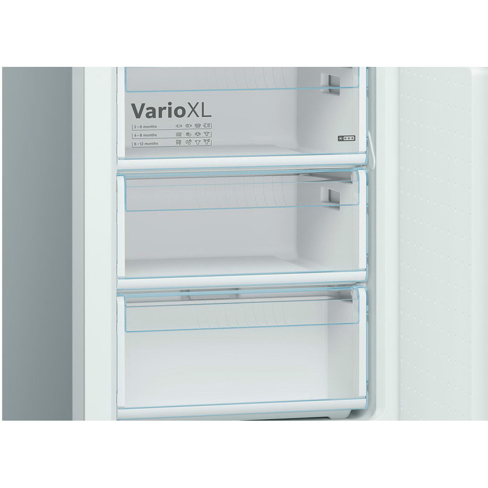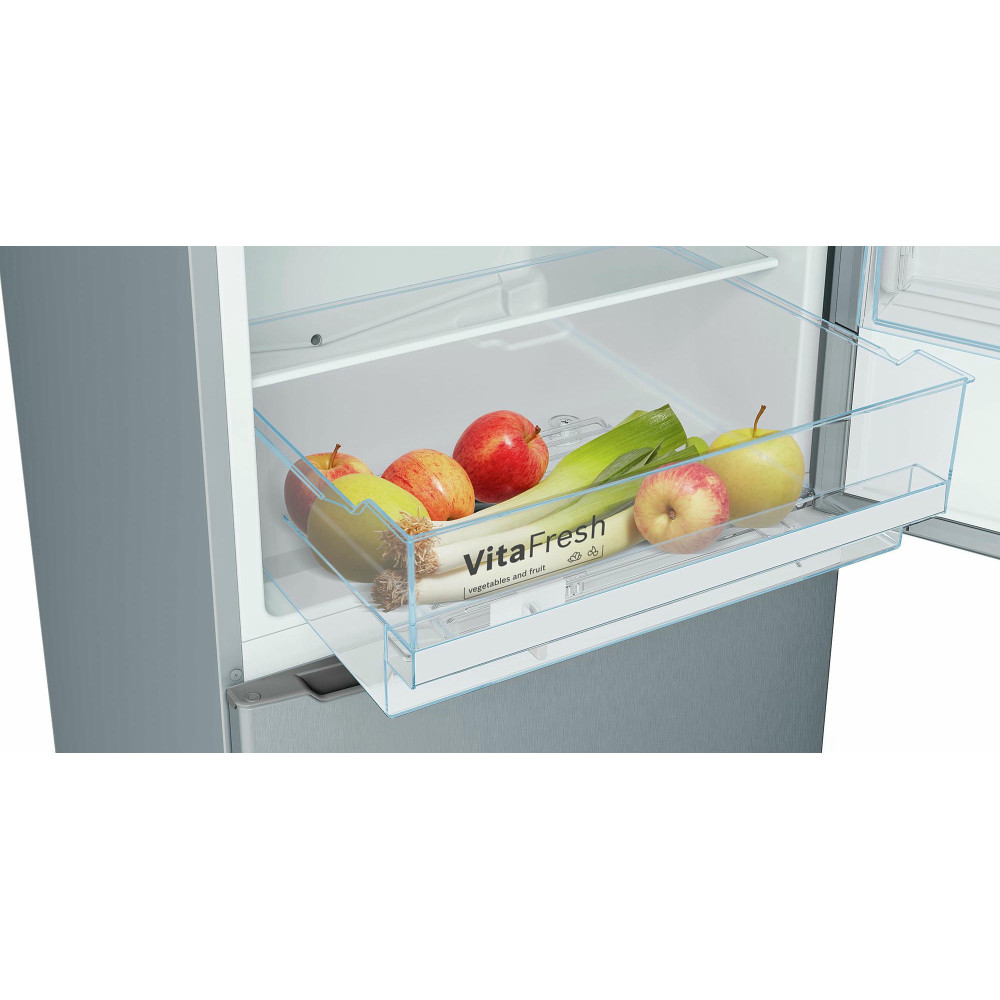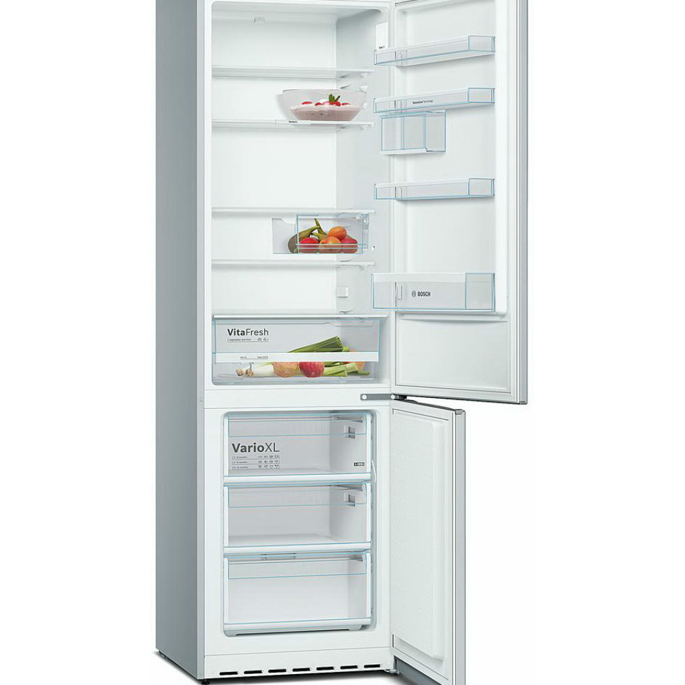 Двухкамерный холодильник BOSCH KGV39XL22 имеет высоту 200 см и представлен в цвете «Нержавеющая сталь». Такой дизайн подчеркнет абсолютно любой интерьер кухни. Общий полезный объем холодильника BOSCH KGV39XL22 составляет 351 л, из которых 257 л приходится на холодильную камеру, а 94 л — на морозильную. Такая модель холодильника отлично подойдет для семьи из 4-х человек. Этот прибор оборудован встроенными датчиками FreshSense, которые контролируют температуру и поддерживают её на установленном уровне. Важную информацию в любой момент можно просмотреть на дисплее, размещённом с внешней стороны двери. Если потребуется, вы легко измените настройки.