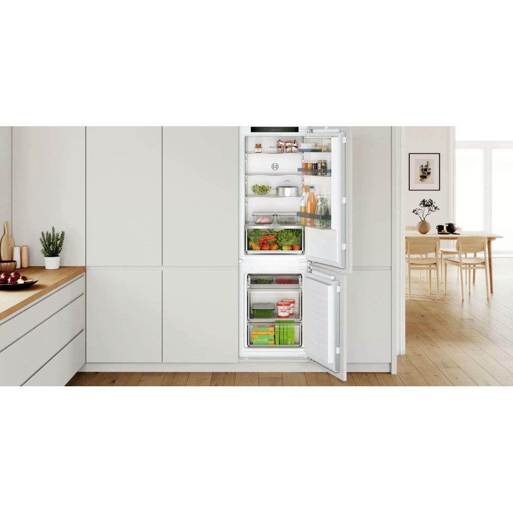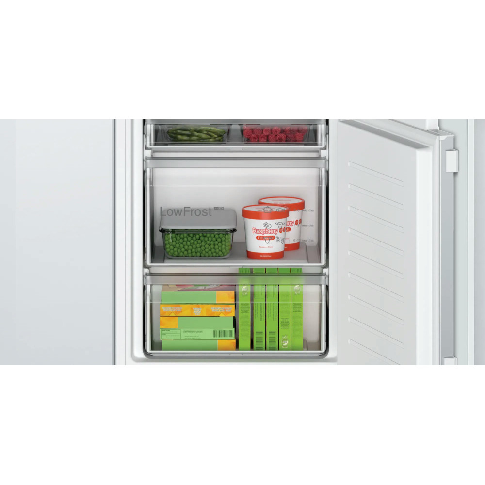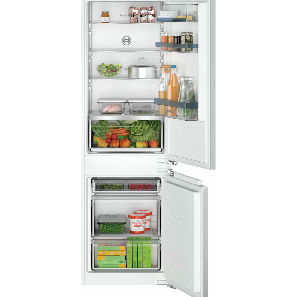 Двухкамерный холодильник Bosch KIV86VFE1 оснащен светодиодными лампами, которые освещают всю рабочую камеру. Ящик VitaFresh позволяет дольше сохранять свежесть фруктов и овощей. Система Low Frost уменьшает образование льда на стенках устройства и не требует частого размораживания.