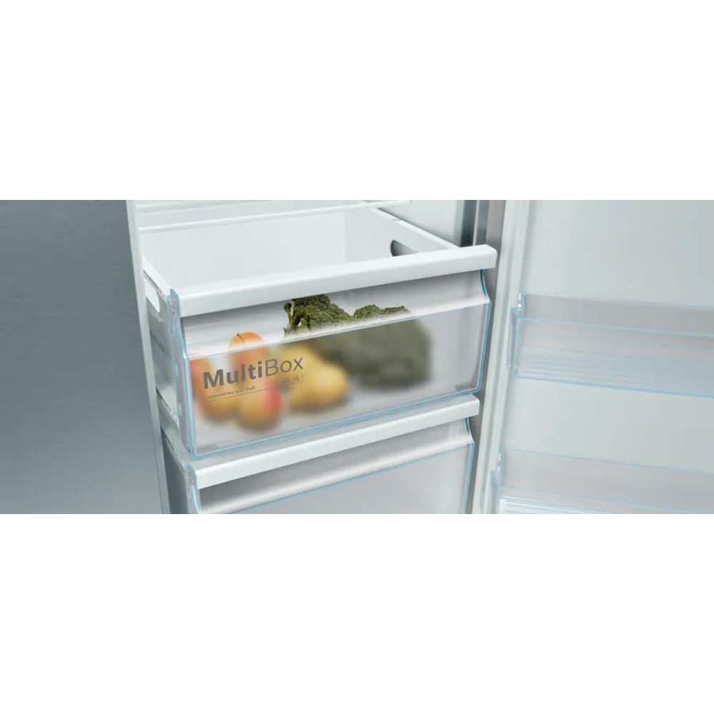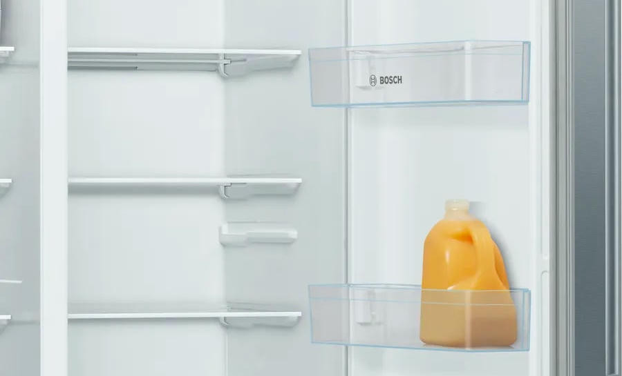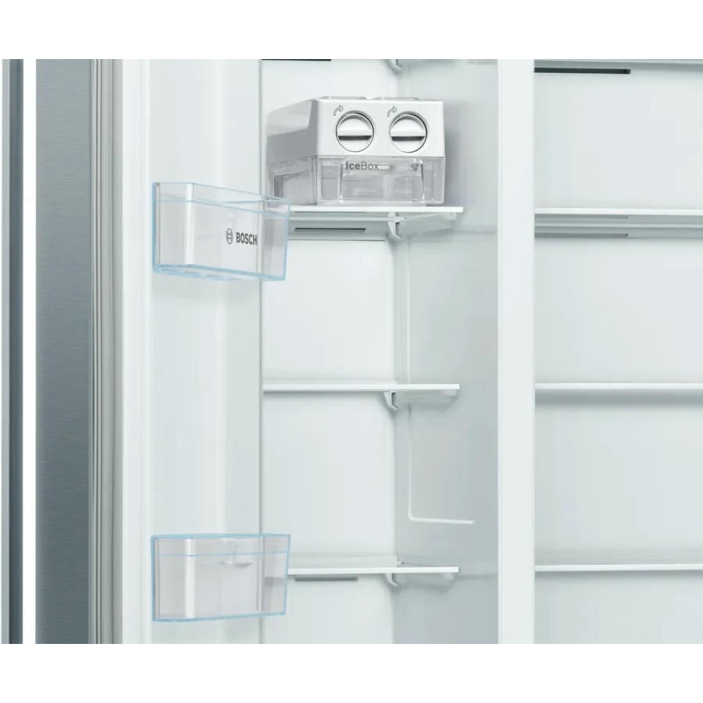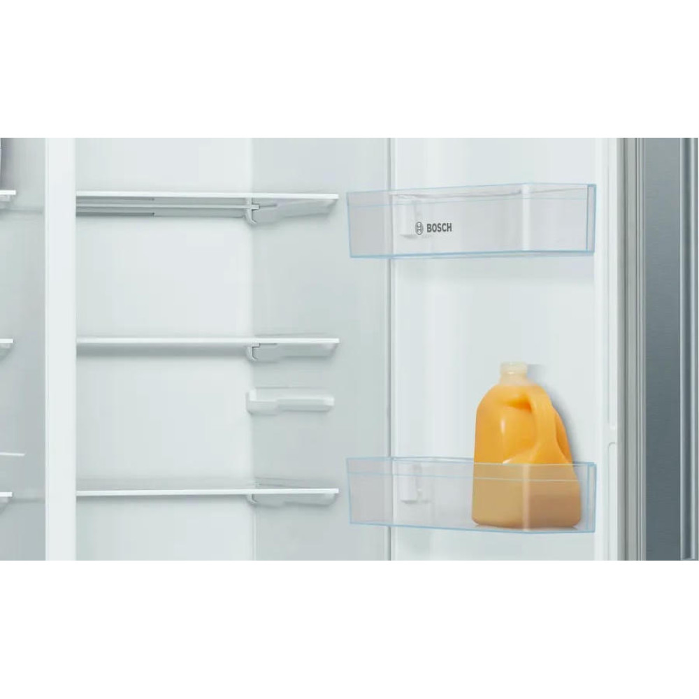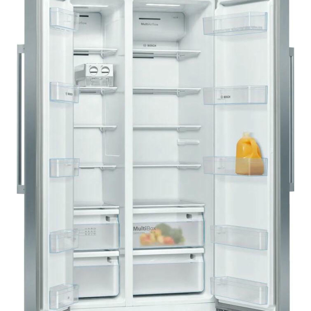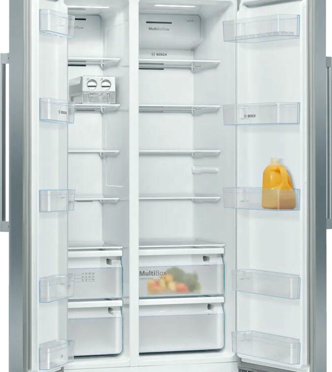 Холодильник Bosch KAN93VL30N из серии Serie 4, обладает общим полезным объемом 616 литров, из которых 371 литр приходится на холодильную камеру и 189 литров на морозильную камеру. Этот холодильник впечатляет своим современным дизайном и качественной отделкой из нержавеющей стали, которая придает ему элегантность и стиль. Управление устройством осуществляется с помощью сенсорных элементов и удобного электронного дисплея. Также холодильник оборудован функцией Home Connect, что позволяет управлять им дистанционно.