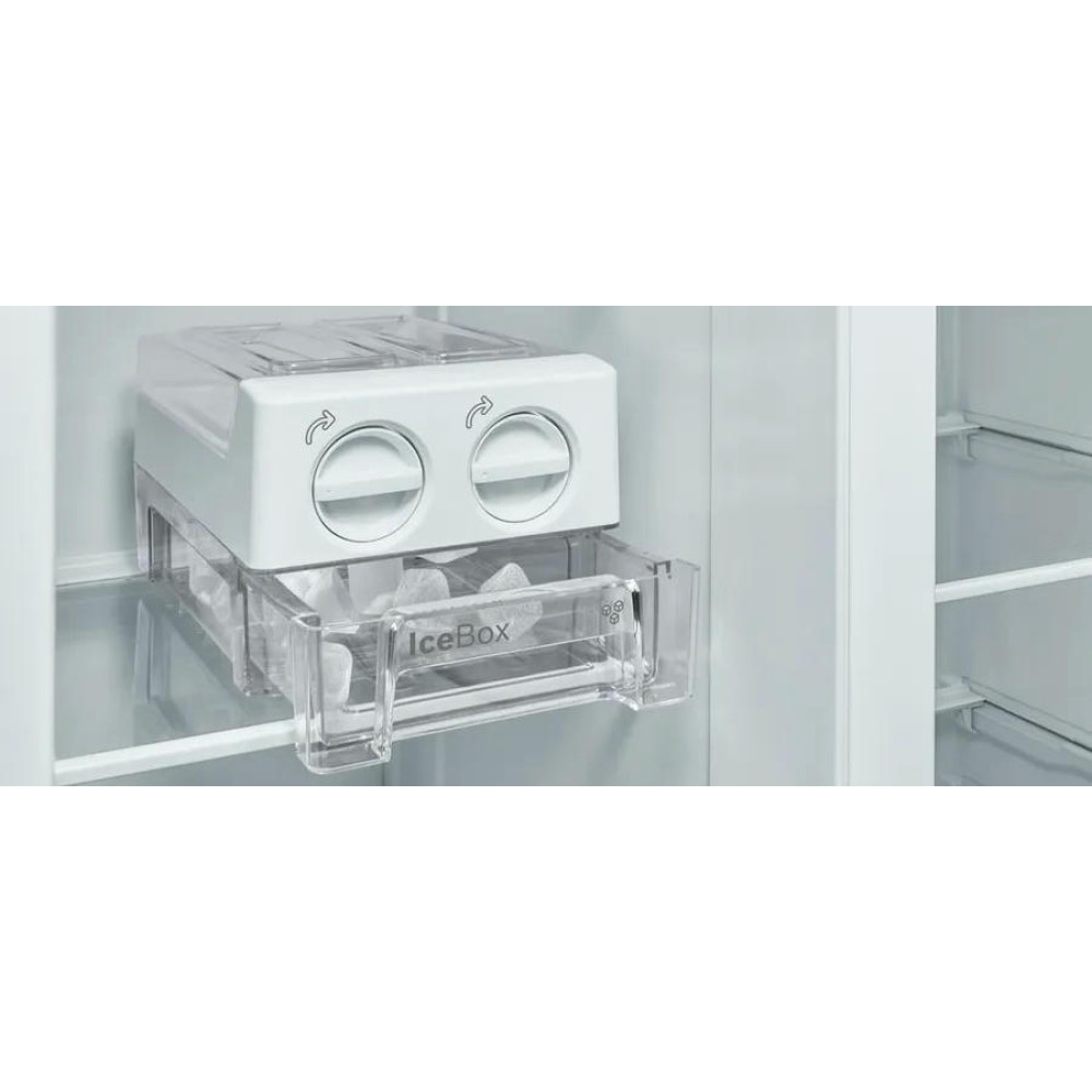 Морозильная камера холодильника оборудована системой NoFrost и функцией суперзамораживания SuperFreezing, что позволяет быстро замораживать продукты, сохраняя их витамины и минералы. Также в морозильной камере есть ручной ледогенератор, что очень удобно для приготовления прохладительных напитков. Этот холодильник отличается высокой энергоэффективностью, его класс энергопотребления – E (старое обозначение A++). Годовой расход электроэнергии составляет всего 363 кВтч, что делает его экономичным вариантом для любого дома.