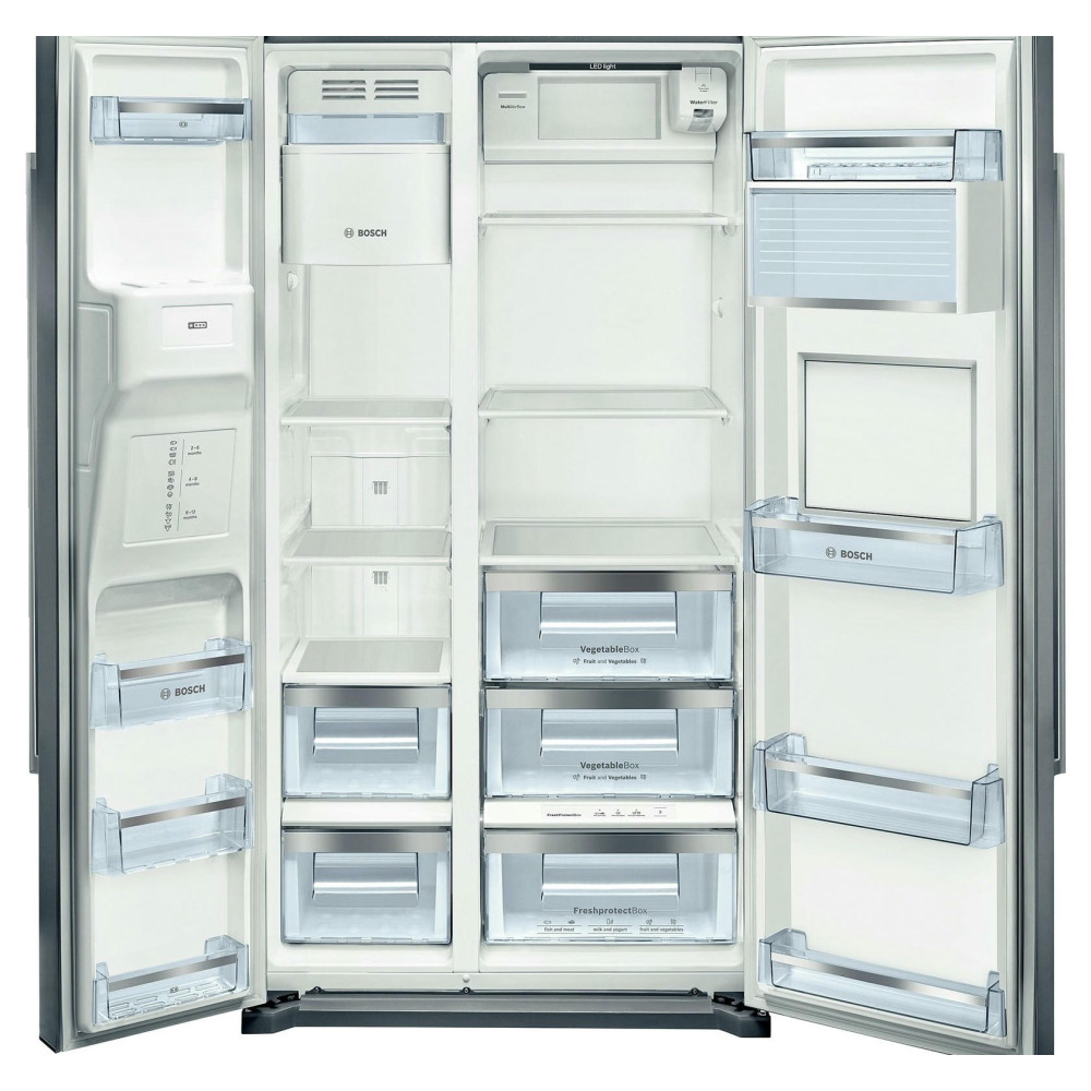 Модель оборудована надверной сенсорной электроникой с цифровым дисплеем, что обеспечивает комфортное управление температурными режимами. Холодильное отделение оснащено зоной свежести и двумя боксами для хранения свежих фруктов и овощей. Ледогенератор с подсветкой гарантирует качественное приготовление кубиков льда и охлажденной воды.