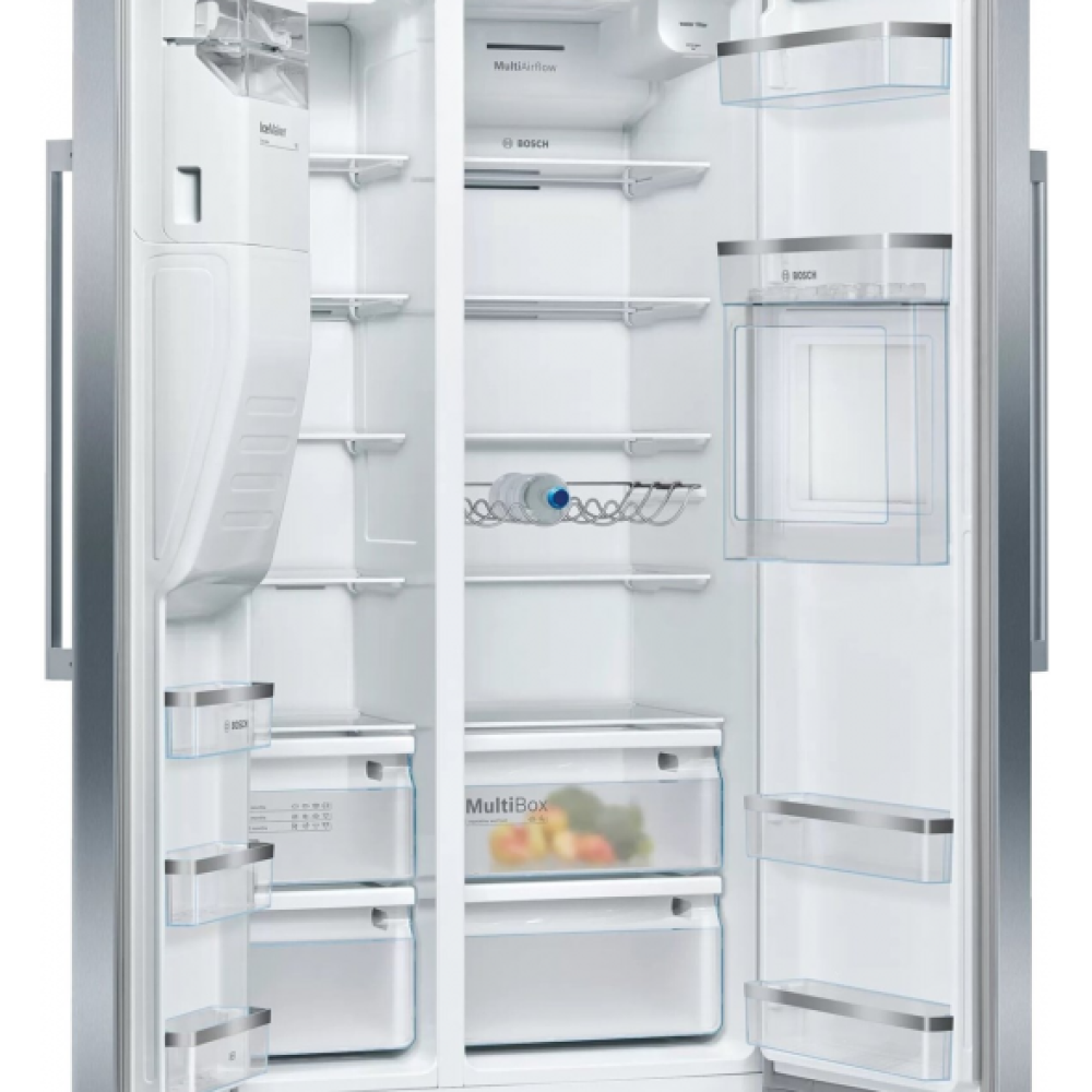 Холодильник Side-by-Side Bosch KAG93AI304 с технологией NoFrost, системой подачи льда, воды - незаменимый помощник на любом празднике. Multi Airflow - равномерная циркуляция воздуха в холодильнике. Нет необходимости размораживать морозильную камеру благодаря системе NoFrost. Прозрачный ящик MultiBox с волнистым дном, идеально подходит для хранения фруктов и овощей. Светодиодная подсветка LED ярко и равномерно освещает пространство холодильника. Класс энергопотребления А++, очень экономичный.