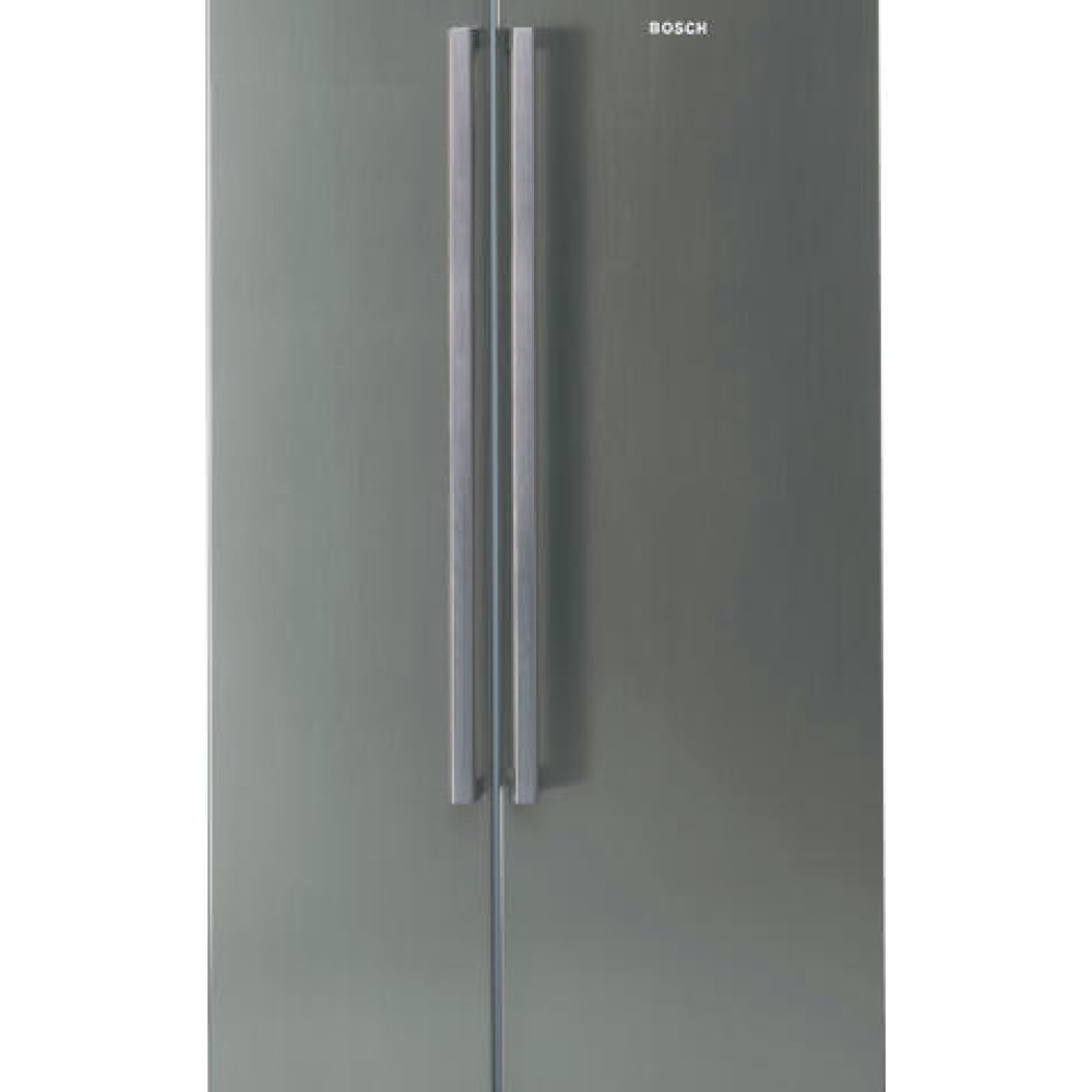 Стильный холодильник Bosch KAN 56V45 выполнен в цвете «нержавеющая сталь», яркая светодиодная подсветка подчеркивает индивидуальность модели. Обе камеры холодильника оснащены системой NoFrost, поэтому наледь и иней не образуются на стенках. Регулировка работы камер осуществляется раздельно с помощью электронного управления. Отсутствие ледогенератора компенсируется наличием дополнительного пространства для хранения продуктов. Три из четырех полок холодильной камеры с возможностью переустановки по высоте.