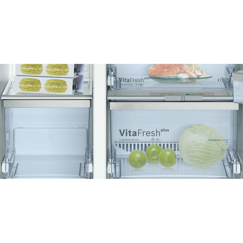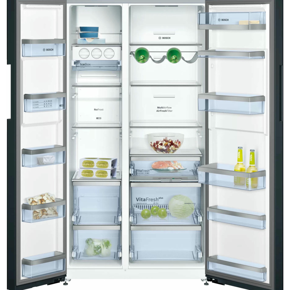 Холодильник Side-by-Side Bosch KAN92LB35 — новинка, оснащенная большой морозильной камерой с полками: заготавливайте больше запасов! Контейнеры VitaFresh Plus плавно и легко выдвигаются на телескопических направляющих. Они просты и удобны в обращении.
