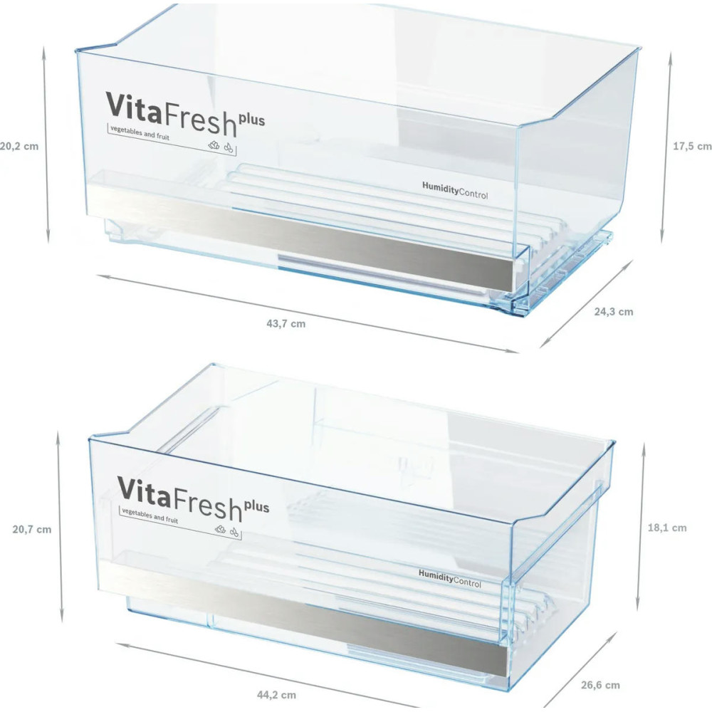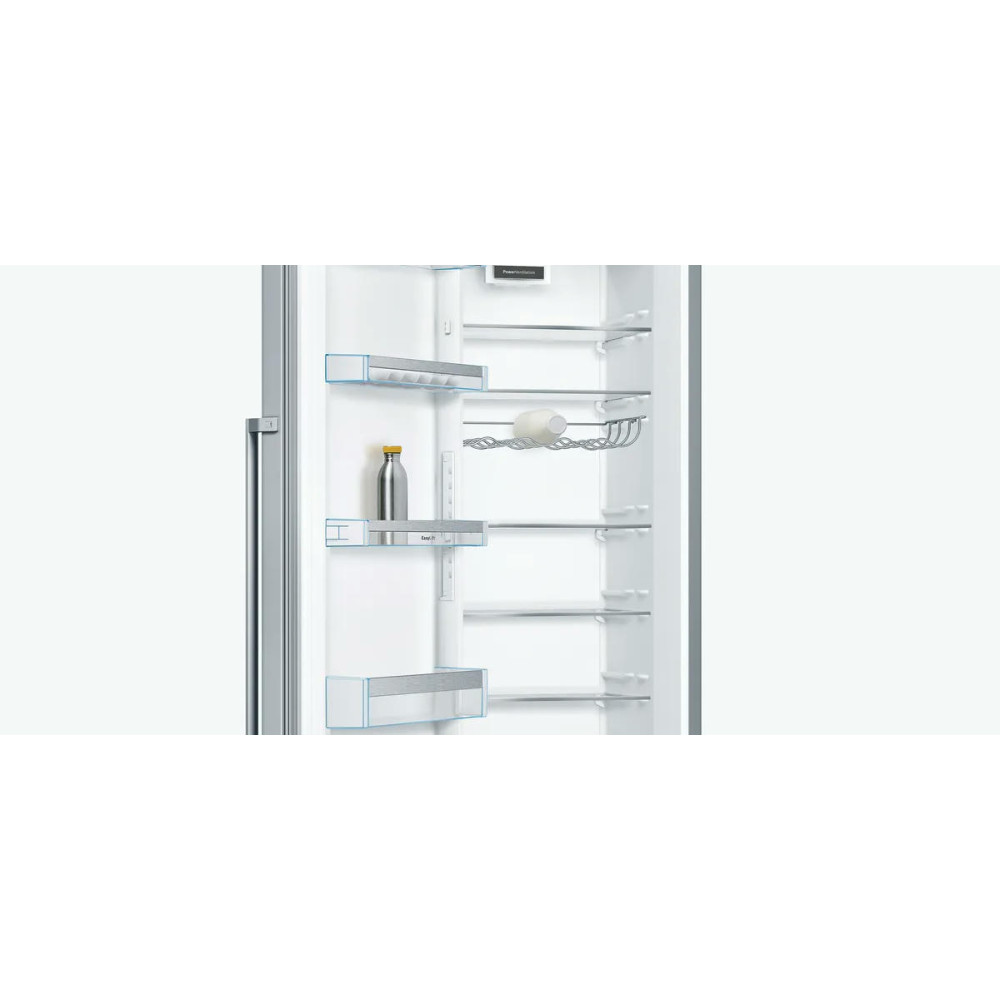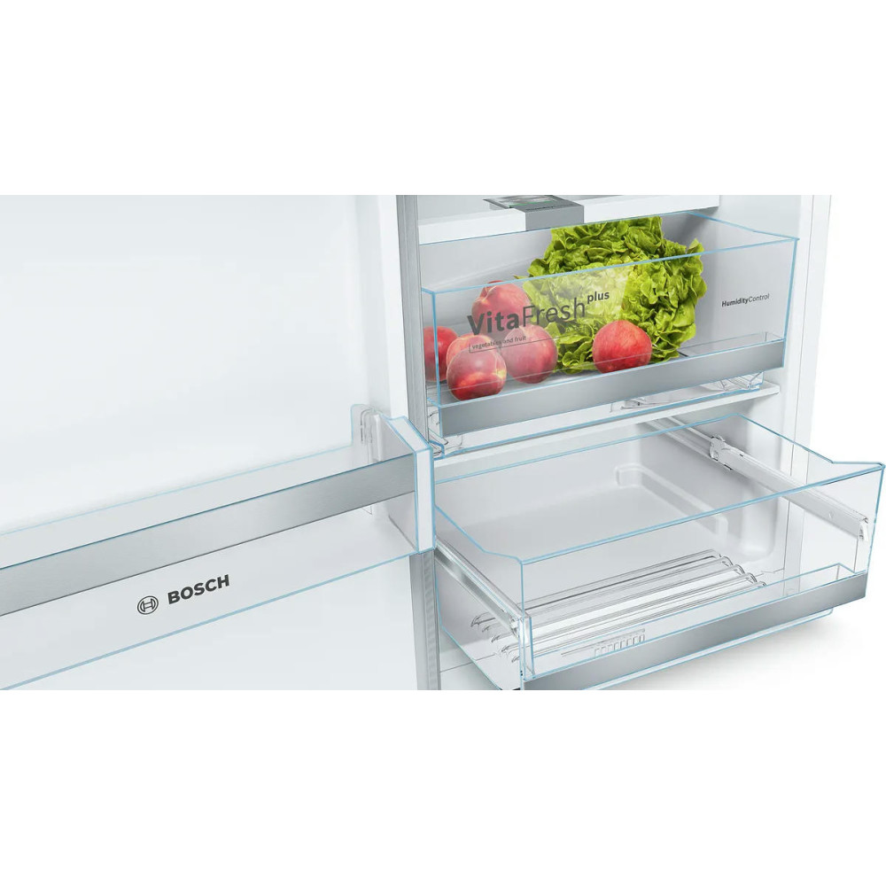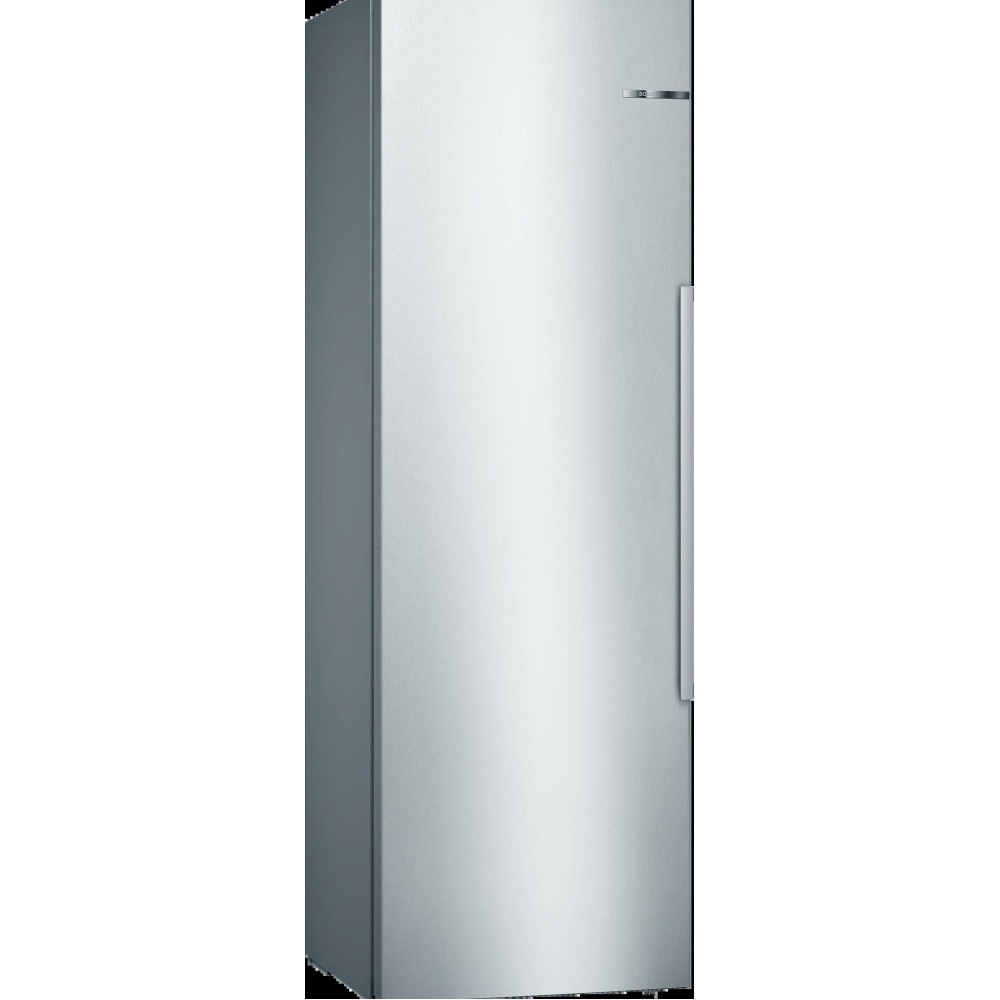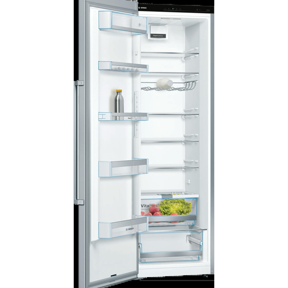 Однокамерный холодильник Bosch KSV36AIEP — это современное решение для хранения продуктов, сочетающее в себе функциональность и стильный дизайн. Изготовленный в Евросоюзе, этот аппарат обладает 12 месяцами гарантии, подтверждающей его надежность и долговечность. Основной материал корпуса — нержавеющая сталь, которая не только придает модели элегантный внешний вид, но и обеспечивает долгий срок службы. Особенностью является обработка корпуса против отпечатков пальцев, что позволяет сохранять идеальную чистоту и блеск поверхности. Управление холодильником осуществляется с помощью сенсорных кнопок, расположенных на электронном дисплее. Динамическая система охлаждения обеспечивает равномерное распределение холодного воздуха по всему объему холодильника, что позволяет сохранить свежесть продуктов на долгое время. Автоматическая система размораживания избавляет от необходимости периодического отключения холодильника для удаления инея. Особую функцию представляет суперохлаждение, которое позволяет быстро охладить большое количество продуктов, сохраняя их свежесть и вкус. Внутри холодильника расположено 7 полок, 4 из которых можно регулировать по высоте. Полки из высокопрочного стекла обеспечивают безопасное хранение продуктов, а выдвижные полки EasyAccess упрощают доступ к ним. Зона свежести VitaFresh plus помогает сохранить витамины и полезные свойства продуктов на долгое время. Энергопотребление холодильника относится к классу E (старое обозначение A++), что делает его экономичным и экологически чистым.