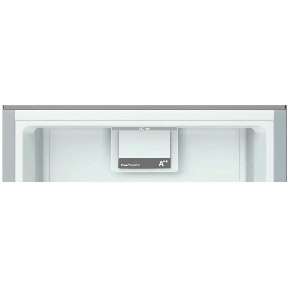 Аппарат имеет общий полезный объем 346 литров и оснащен семью полками в холодильной камере, из которых пять можно регулировать по высоте. Внутреннее освещение светодиодное, что обеспечивает яркий и равномерный свет внутри холодильника. Дверь холодильника оснащена пятью полками и тремя подставками для яиц.