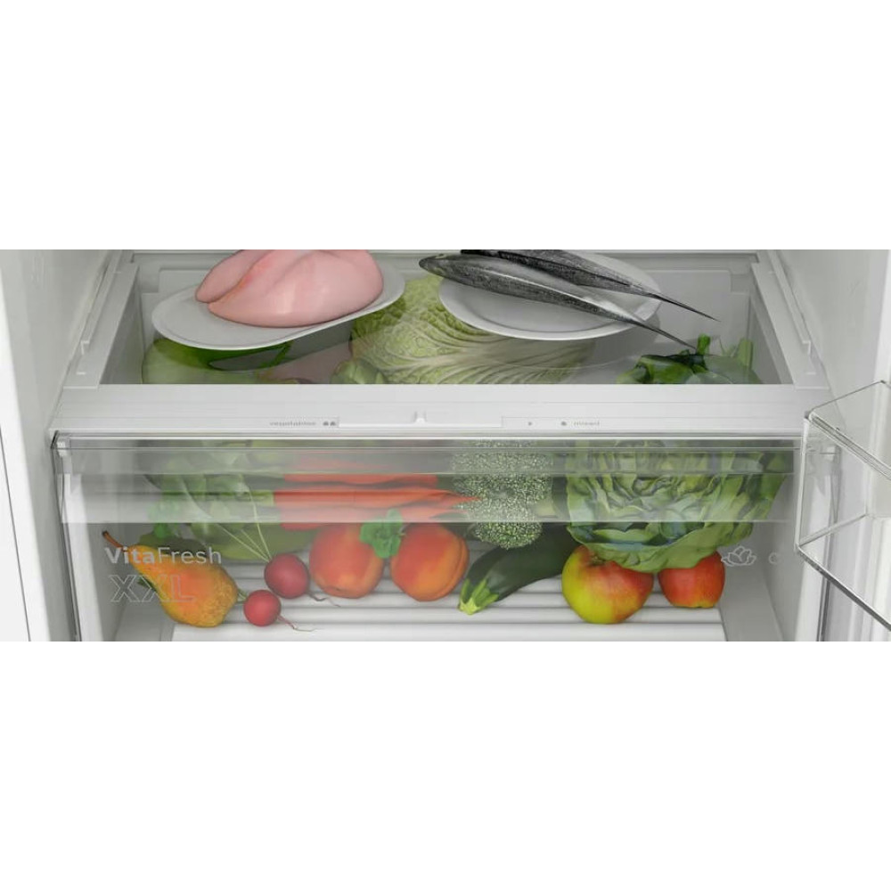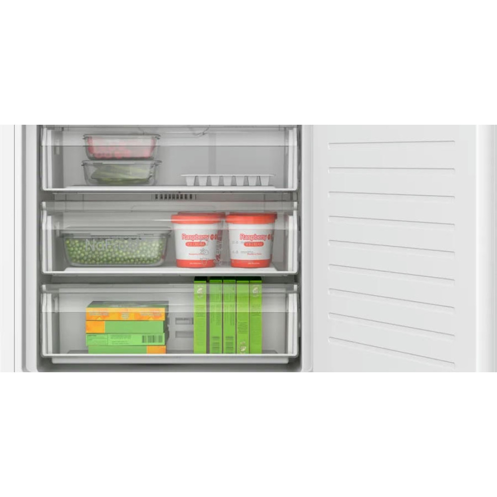Зона свежести VitaFresh обеспечивает оптимальные условия для хранения овощей и фруктов, а также мясных и молочных продуктов. Такие продукты сохраняют свою свежесть и питательные свойства на протяжении более длительного времени. Морозильная камера имеет мощность замораживания 9.5 кг/24 ч и автономное сохранение холода в течение 12 часов. В ней предусмотрено 3 ящика и 1 ванночка для льда. Все это делает ее удобной и функциональной для хранения замороженных продуктов.