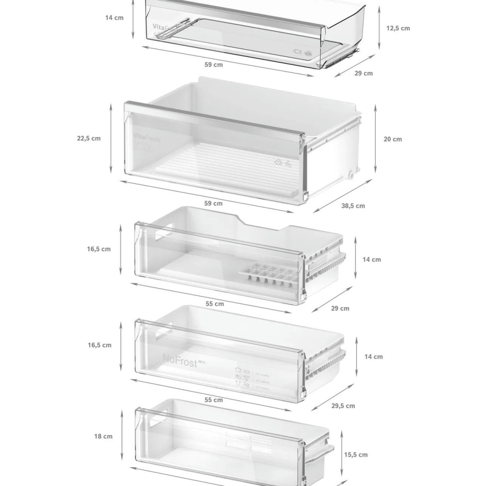 Холодильная часть использует динамическую систему охлаждения в сочетании с MultiAirflow, что обеспечивает однородный поток воздуха по всему объему и помогает поддерживать стабильную температуру на каждом уровне. Система автоматического размораживания освобождает от необходимости ручного обслуживания, а зона VitaFresh предназначена для продления срока хранения овощей, фруктов и мясных продуктов, сохраняя структуру и витамины дольше обычного.