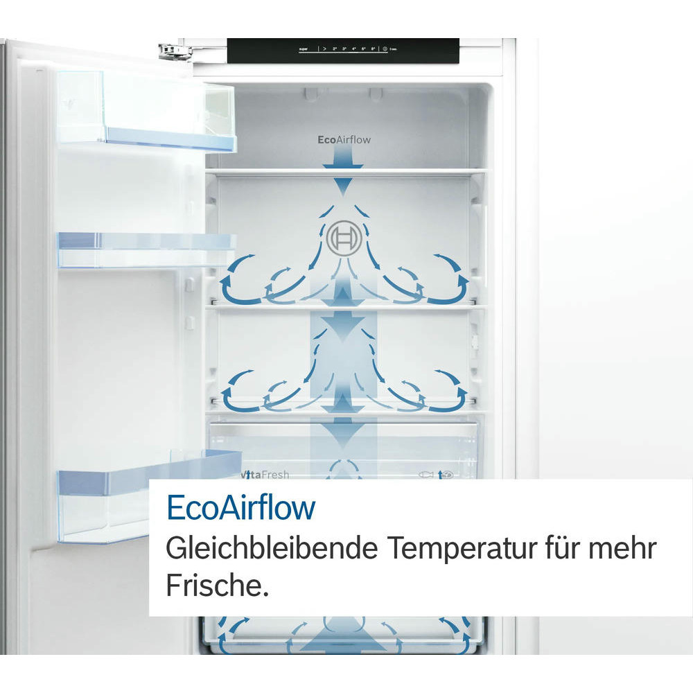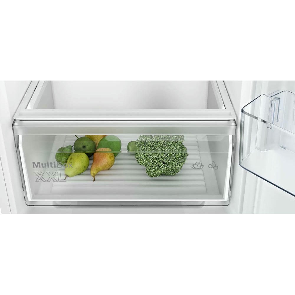 Система охлаждения No Frost предотвращает образование инея и обеспечивает равномерное распределение холода по всему объему холодильной камеры. Автоматическая система размораживания облегчает уход за устройством, а функция суперохлаждения позволяет быстро охладить продукты после покупки. Внутреннее пространство холодильника продумано до мелочей. Четыре полки из высокопрочного стекла, три из которых можно регулировать по высоте, позволяют оптимально распределить продукты. Выдвижной контейнер MultiBox идеален для хранения овощей и фруктов, а три полки на дверце обеспечивают дополнительное пространство для хранения. Светодиодное освещение обеспечивает яркий и равномерный свет, позволяя легко найти необходимые продукты.