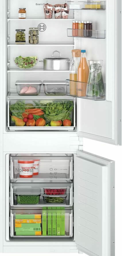 Встраиваемый двухкамерный холодильник Bosch KIN86NSE0 - это превосходное сочетание современного дизайна и передовых технологий. Он обладает стильным внешним видом, выполненным в классическом белом цвете, который идеально впишется в любой интерьер. Это устройство отличается своей эргономикой и функциональностью, что делает его незаменимым помощником на кухне. Холодильник оснащен электронным управлением с сенсорными элементами и дисплеем, что делает его использование максимально удобным и интуитивно понятным.