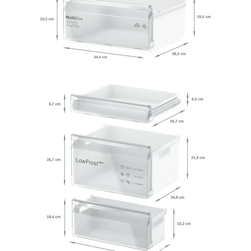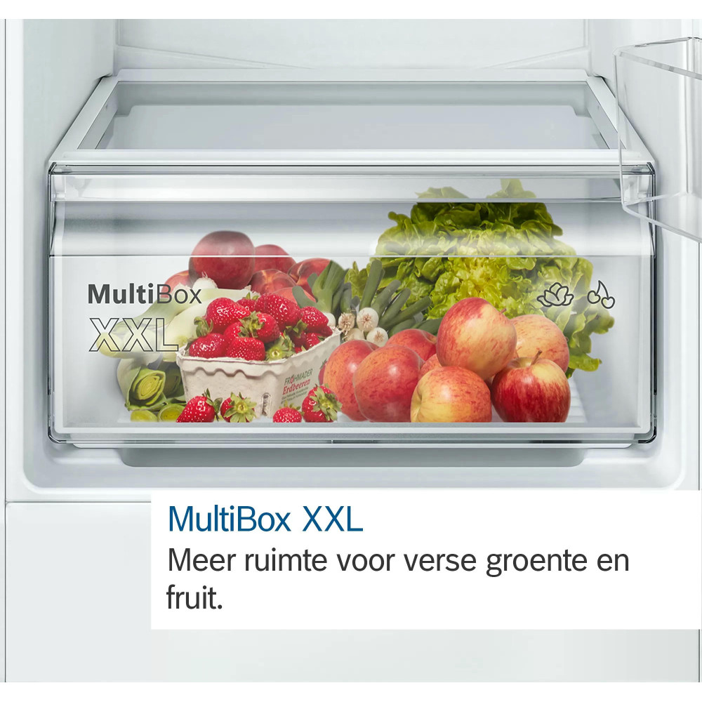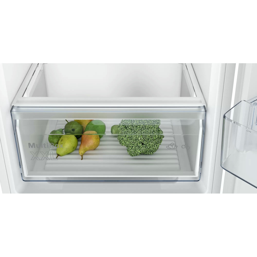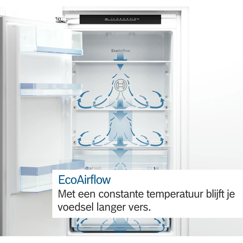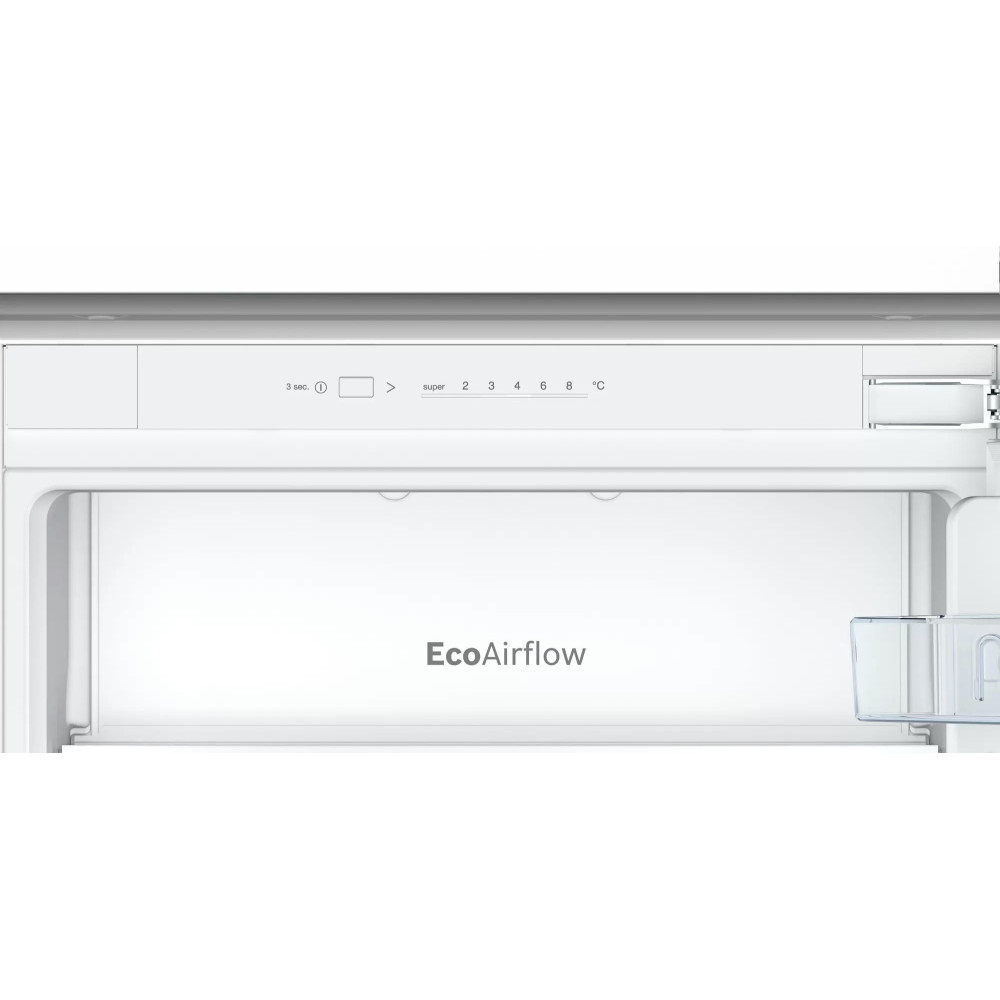Встраиваемый холодильник Bosch KIV 86 NFF0 оснащен системой EcoAirflow — оптимальная циркуляция воздуха и постоянная температура охлаждения. Ящик Big Box: идеально подходит для размещения морозильных ящиков или крупных замороженных товаров. Светодиодное освещение потребляет меньше энергии, чем обычное освещение холодильника и прослужит в течение всего жизненного цикла устройства.