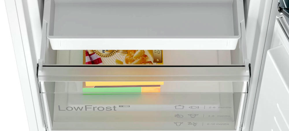 Двухкамерный холодильник Bosch KIV86VS31R — встраиваемая модель VitaFresh XXL с увеличенным объемом холодильной и морозильной камер. Система охлаждения LowFrost уменьшает обледенение морозильной камеры, излишняя влага отводится наружу через специальное отверстие. Функция SuperFreezing обеспечивает быстрое замораживание новых продуктов, предотвращая размораживание содержимого морозилки.
