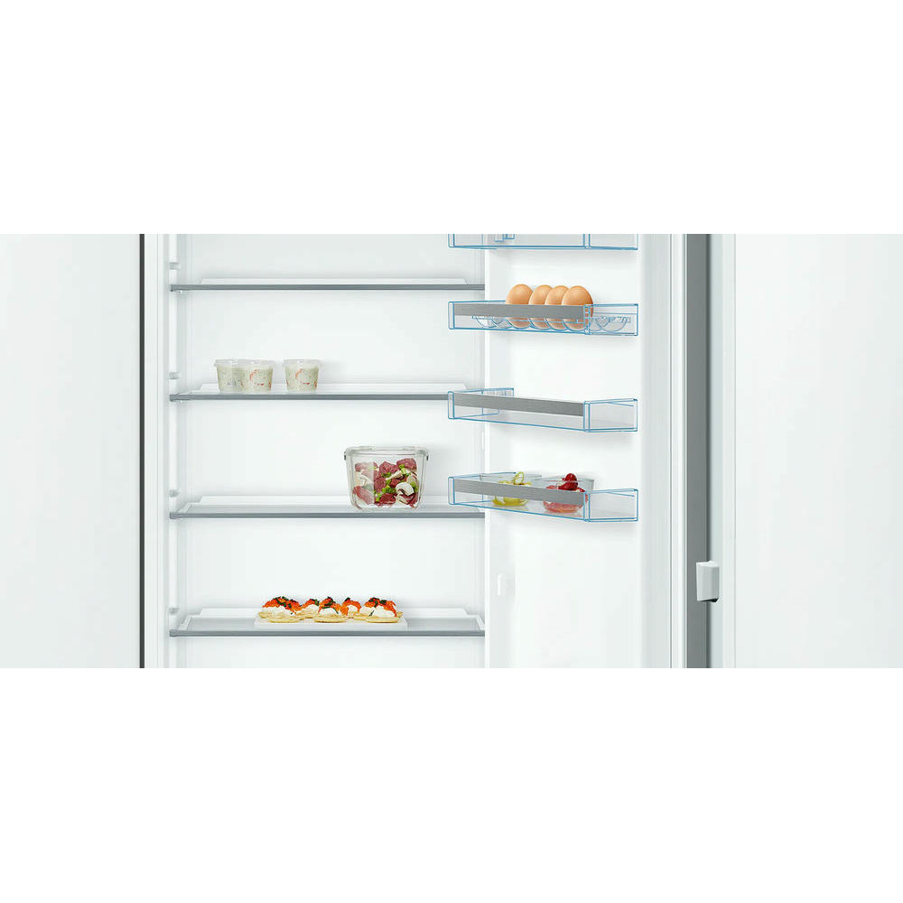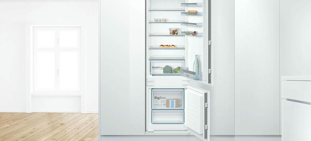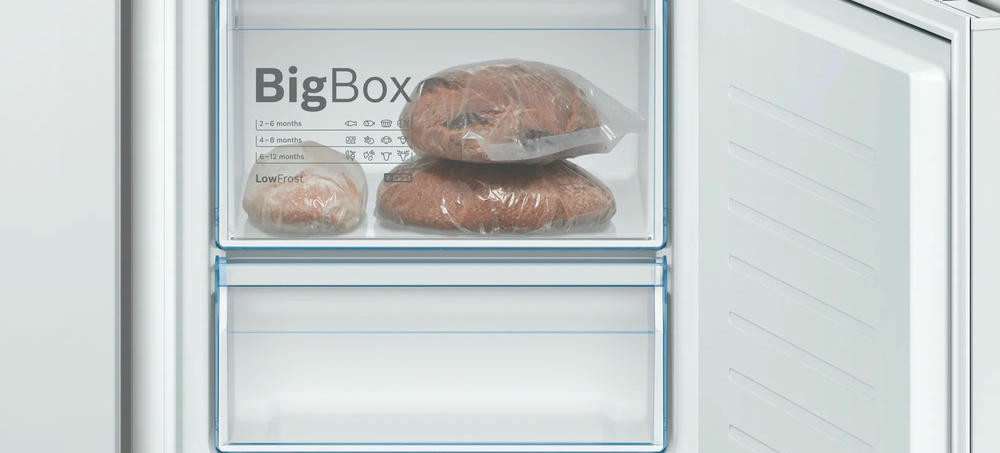 Встраиваемый двухкамерный холодильник Bosch KIV87VS30M оснащен светодиодным освещении, оно не требует постоянной замены и равномерно освещает все полки прибора. Специальные датчики FreshSense отслеживают температуру внешней среды и внутренней и исходя из этого регулируют баланс. Функция SuperFreezing поддерживает холод при добавлении новый продуктов.