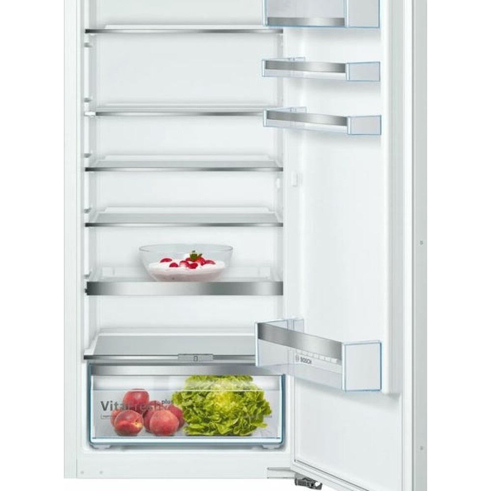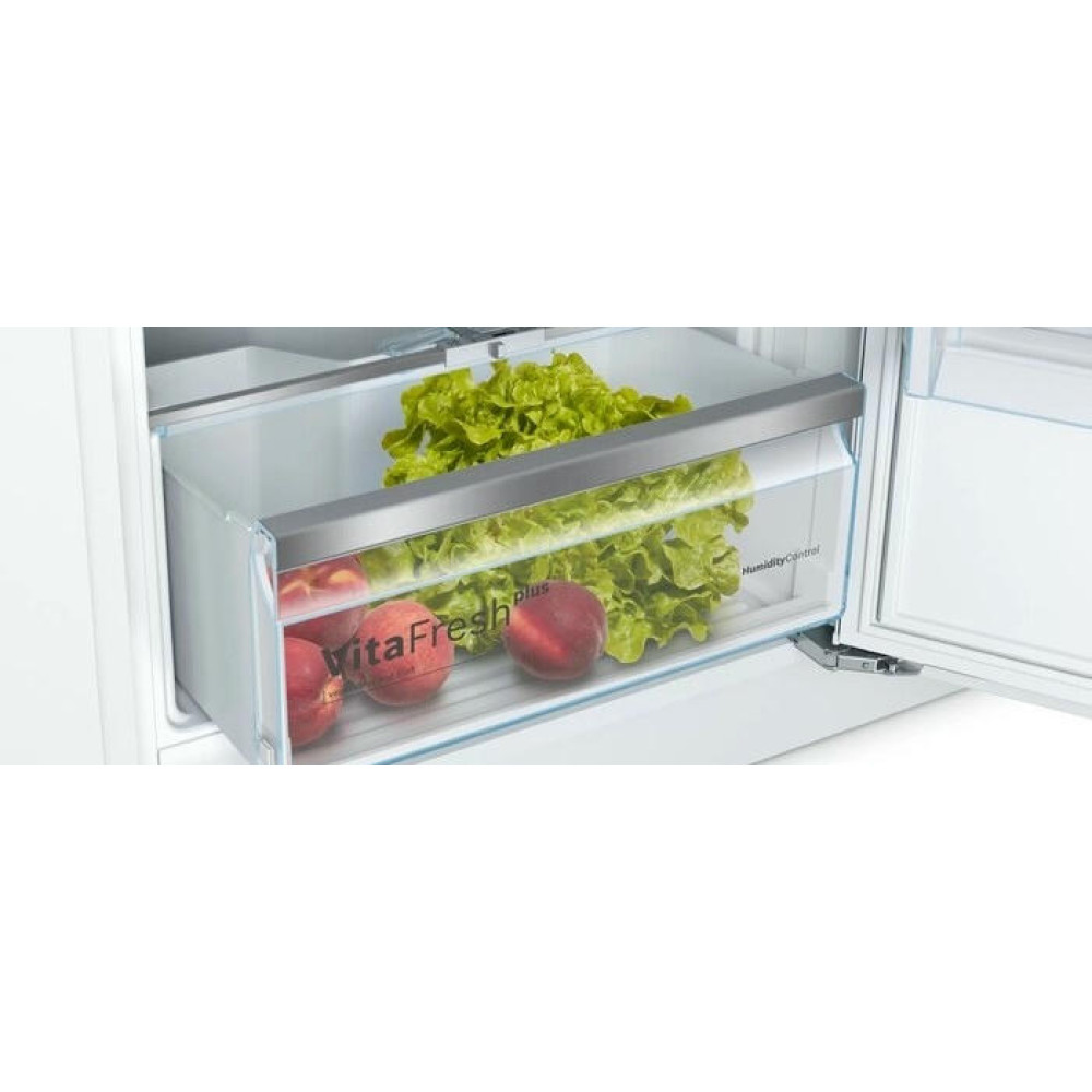 Встраиваемый однокамерный холодильник Bosch KIR41ADD0 — модель с зоной свежести VitaFresh plus Box, которая создана для хранения фруктов и овощей. Система VarioShelf — удобные разделяющиеся полки, которые позволяют размещать высокие упаковки и бутылки. Постоянная температура поддерживается при помощи датчиков FreshSense и технологии VitaControl.