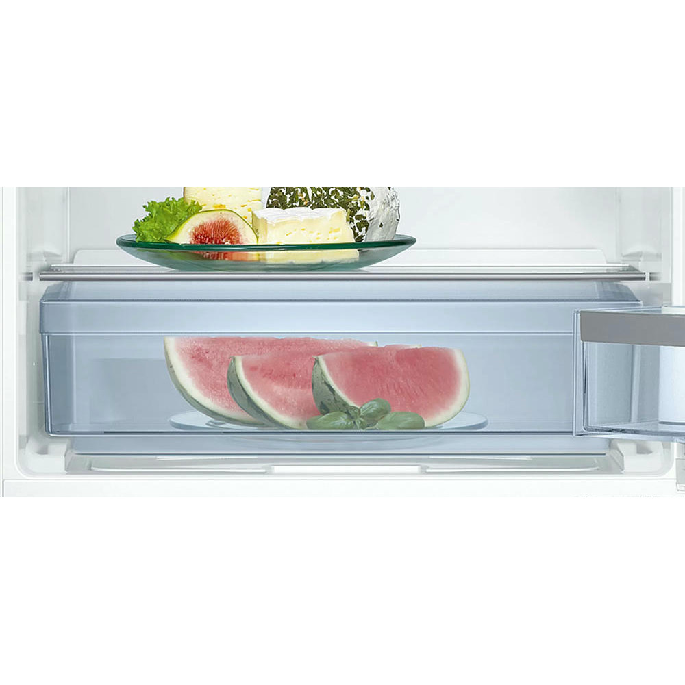 Bosch KUL15AFF0R имеет ящик с рифлёным дном, который сконструирован так для создания оптимальных условий хранения овощей и фруктов. Данная модель оборудована светодиодной подсветкой, которая отличается экономностью и энергоэффективностью.