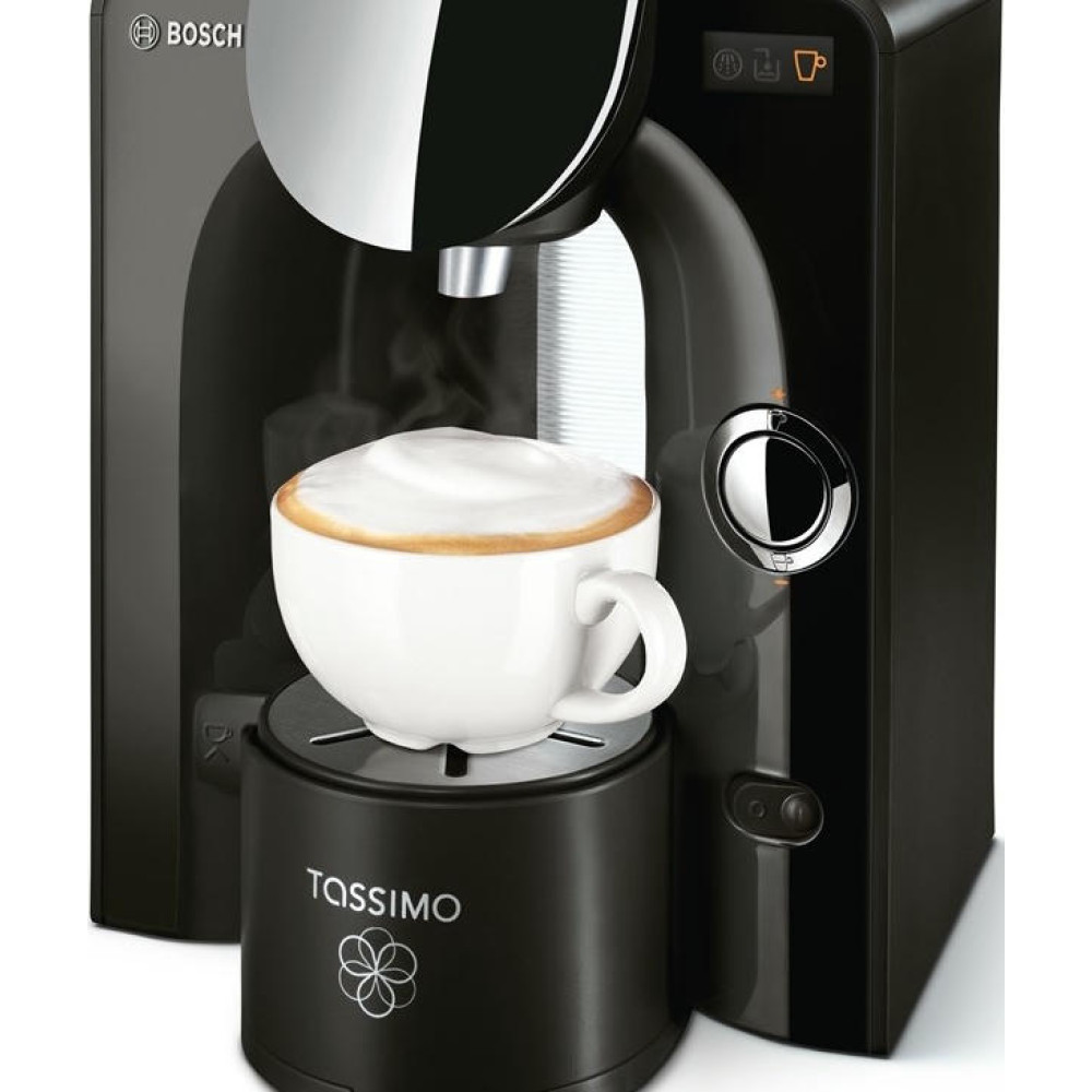 Капсульная кофеварка TAS 5542 EE TASSIMO — это качество, стиль и широкий функционал. Хромированные детали и глянцевое покрытие дополняют дизайн модели. Кофеварка приготавливает качественные напитки с оптимальным соотношением количества воды, времени заваривания и температуры. Машина автоматически считывает штрих-код с капсулы (Т-диска). Съемная подставка для чашки регулируется по высоте, что позволяет использовать различные по размеру стаканы.