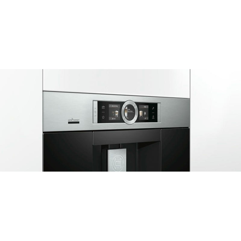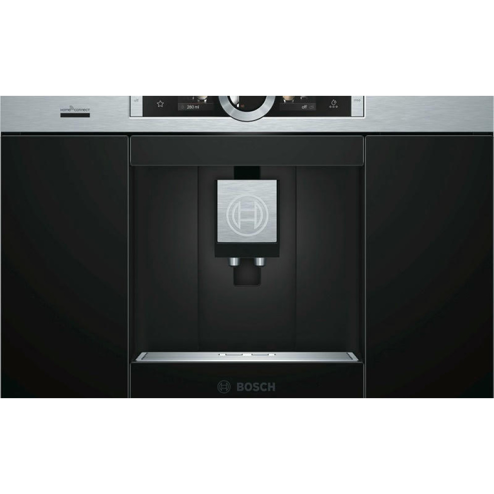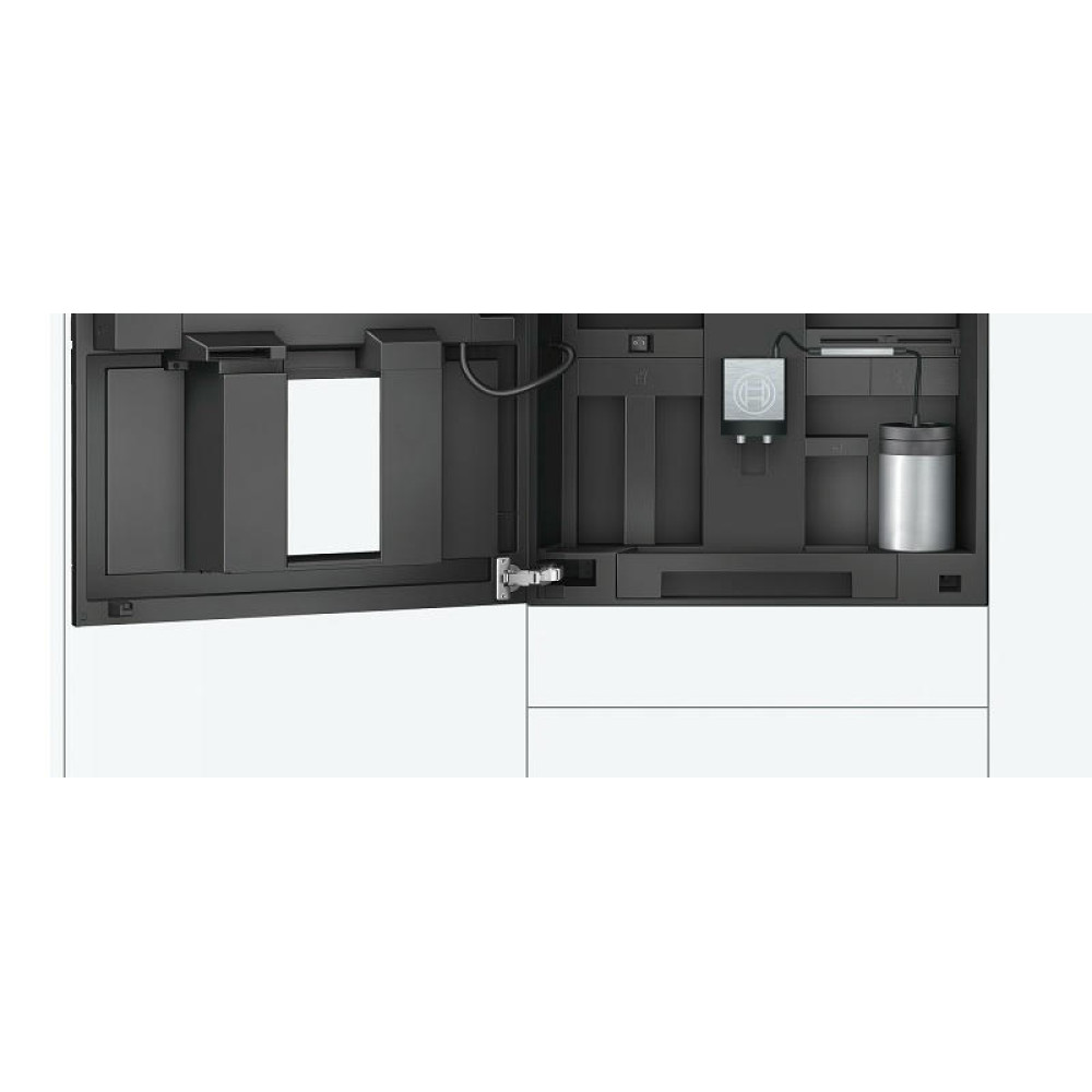 Кофемашина Bosch CTL636ES6 — стильная и удобная встраиваемая модель, допускающая использование как зернового, так и молотого кофе. Бесшумная кофемолка SilentCeram Drive с керамическими жерновами обеспечивает высокое качество помола и насыщенный яркий вкус напитка. Выбирать все необходимые настройки можно при помощи дисплея с сенсорными кнопками, благодаря которым можно буквально одним прикосновением задать нужный рецепт или приготовление двойной порции. Кроме того доступно удаленное управление через мобильное устройство при помощи опции Home Connect.