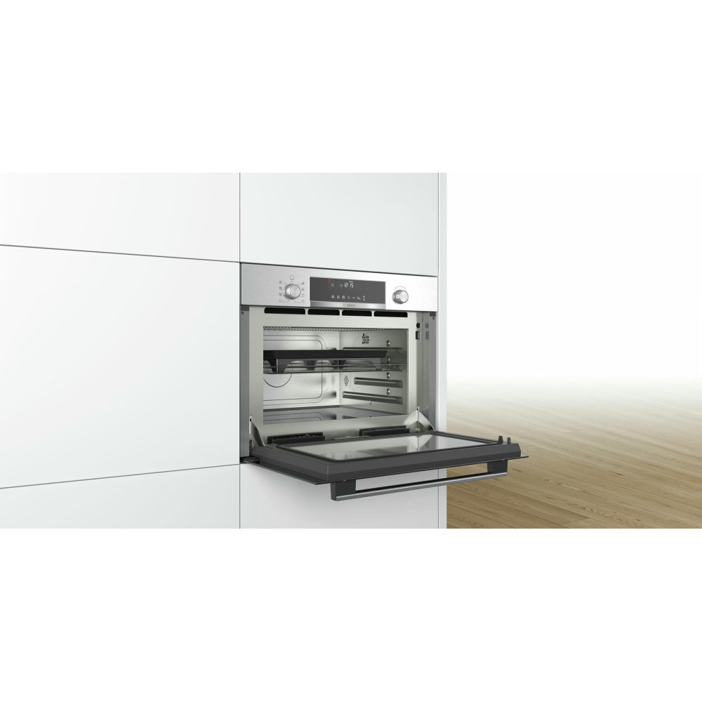 Bosch COA565GS0 — это встраиваемая микроволновая печь в цвете нержавеющей стали с функцией пара. Управляется при помощи поворотных переключателей сенсорной панели TouchControl. Предусмотрена блокировка от детей и система защитного охлаждения.